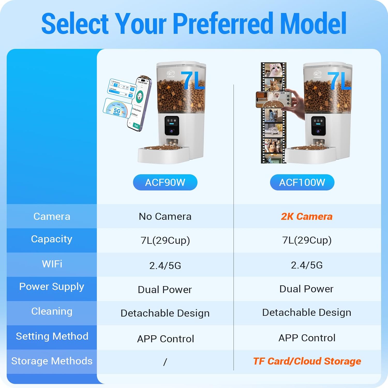 - Dual-band WiFi : The automatic dog feeder supports dual-band WiFi (2.4GHz & 5GHz). Dual-band WiFi means you don't have to modify your router for channel compatibility issues. Faster 5G networks allow for a more stable signal.