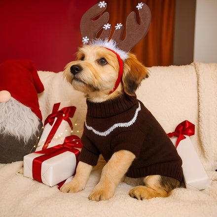 8 Pack Dog Christmas Costume Dog Christmas Pet Sweaters and Headband Set Winter Knitwear Xmas Clothes Adjustable Xmas Hair Hoop Headwear for Pet Costume Accessories (Small)