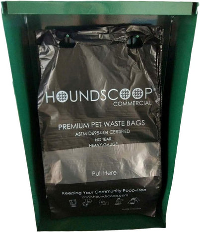 This ideal commercial bag has the best of all worlds. The pull-strap eliminates outdated roll bag systems that require users to tear off at each perforation often leading to wasted extra bags accidentally pulled off. These single pull strap bags are not on a continuous, perforated roll. They're flat-packed and use a pull-strap that dispenses one-bag-at-a-time! They eliminate outdated roll bag systems where users must tear off at each perforation. Vandalism/theft is also reduced, where an entire roll of roll bags can be pulled out with one continuous pull, our single Pull-Strap bags must be pulled one-by-one. Bag usage is reduced up to 70% over traditional "roll style" bags which will lower your expenses significantly. They are heavy-gauge, no tear and leak-proof plus they are oversized for even the largest of clean-ups!