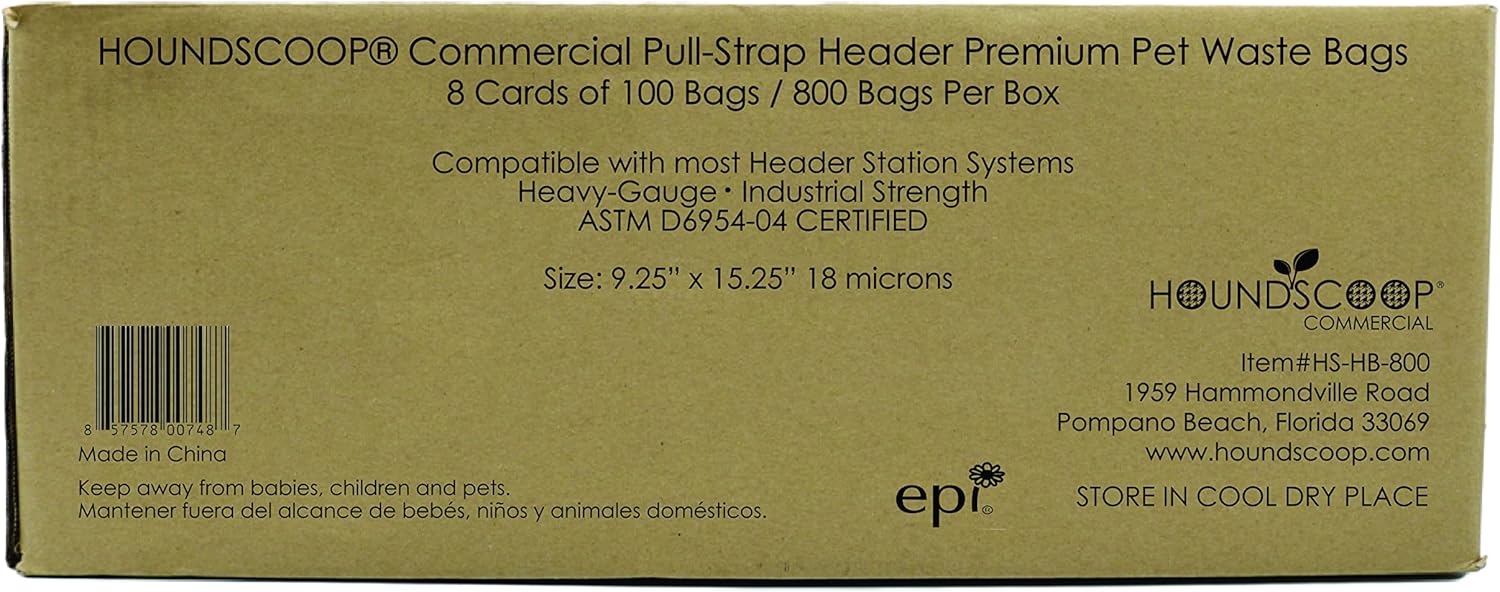 · 800 pull-strap header pet waste bags with 8 header packs of 100 bags per hanging header
