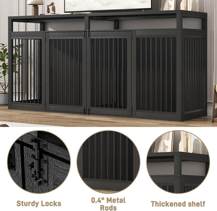 - Double Doors with 4 Locks: The double metal iron pipe doors allow for easy access for cleaning or interaction. The double-door dog crate features four vertical sliding locks to ensure your dog can't easily escape. Our black dog crate furniture is suitable for small, medium, and large breeds