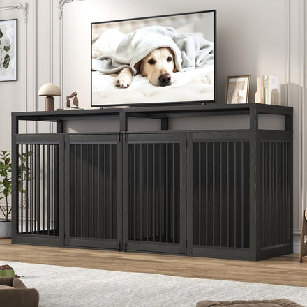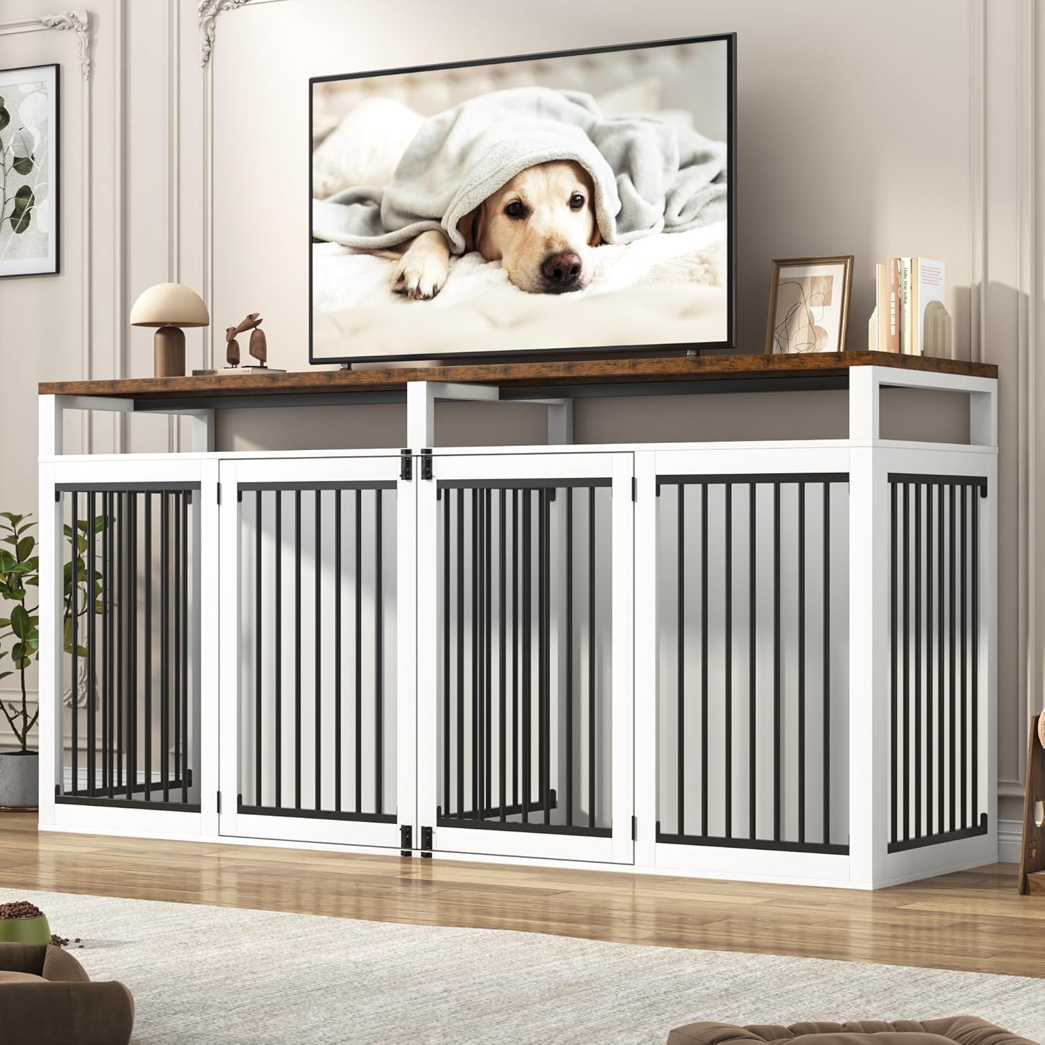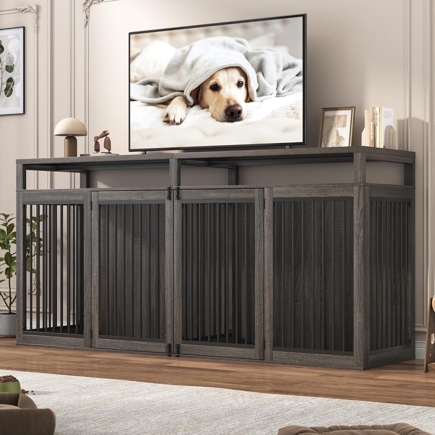 - Flexible Space Design: Our farmhouse wooden TV stand dog crate is designed for large dogs. The center divider allows for easy separation into 2 cages. Your pets will each have their own space without disturbing each other