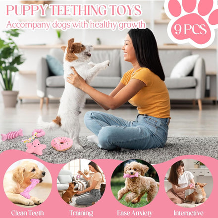 9Pack Pink Puppy Toys for Teething Treat Interactive to Keep Them Busy, Cute Soft Rubber Toy for Small Dogs, Girl Puppy Essentials