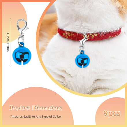 • 【9PCS Bell for Dog Cat Collar】Enhance your pet's visibility and charm with our 9PCS Bell for Dog Cat Collar. These colorful bells are designed for both cats and dogs, featuring a sturdy design that attaches easily to collars with included clasps.