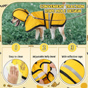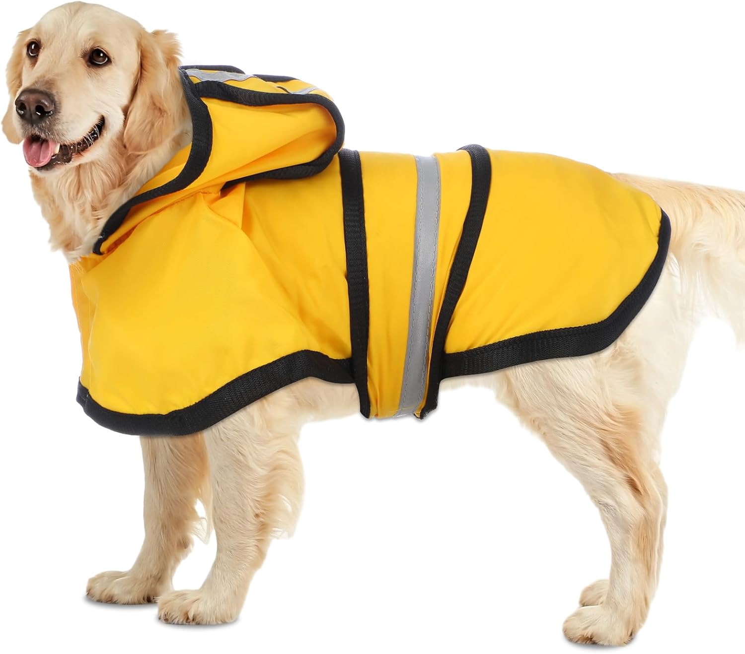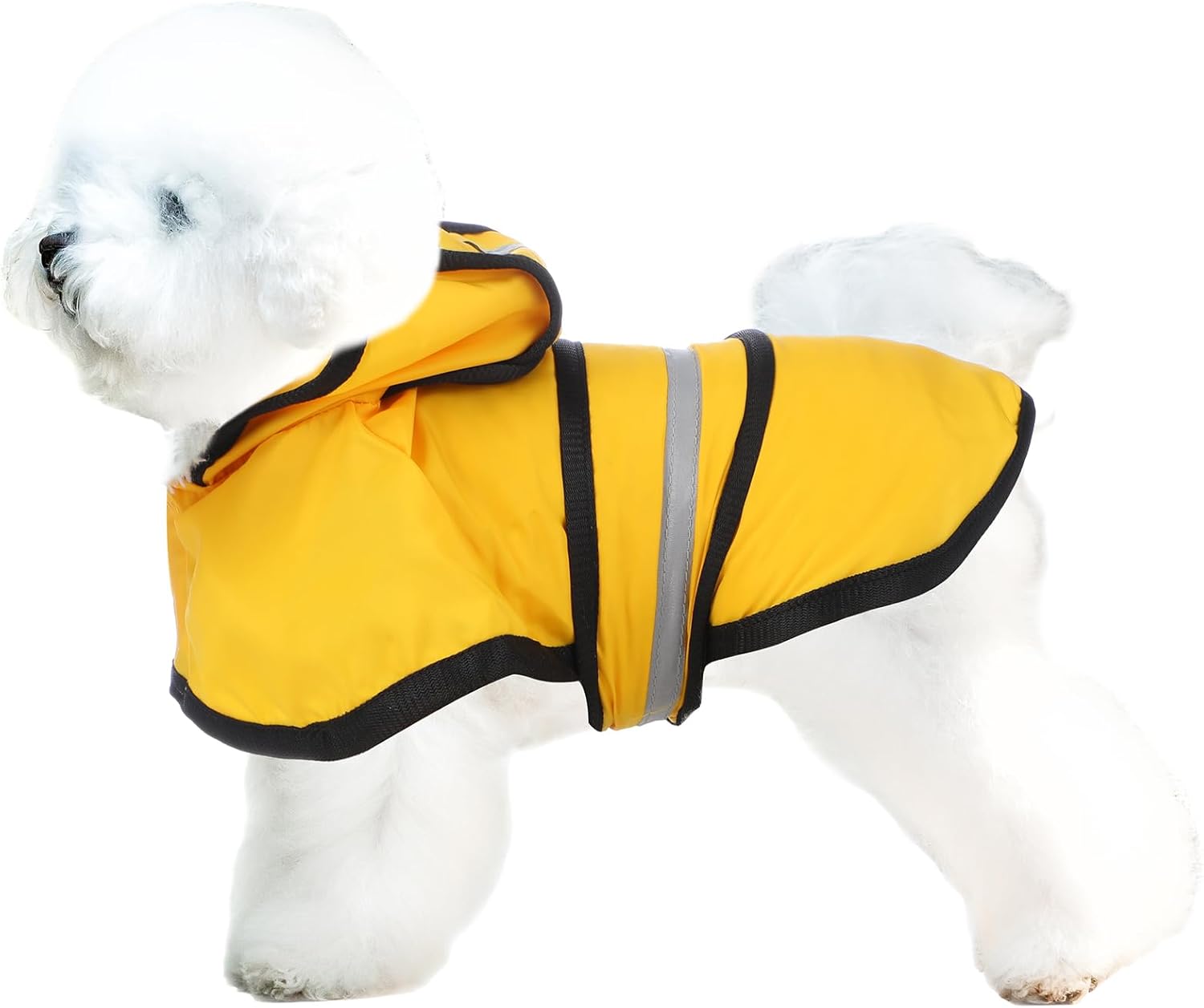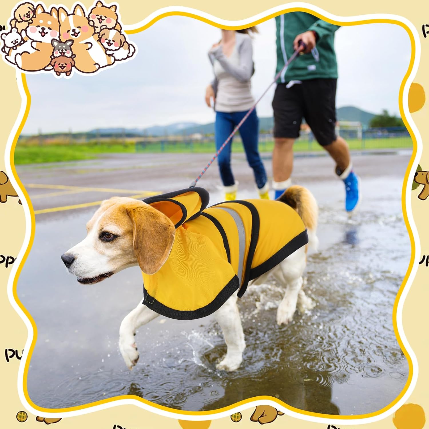 - Waterproof Dog Coat: This yellow dog raincoat is made of polyester waterproof fabric; it is lightweight and waterproof; Note: Before ordering, you need to measure your dog's body length, belly circumference, neck circumference, etc. Please make sure of the size before ordering