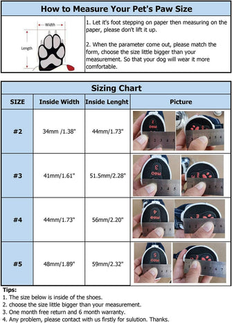 - Please measure the size of your dog's feet before buying dog shoes. One month free return and 6 month warranty.