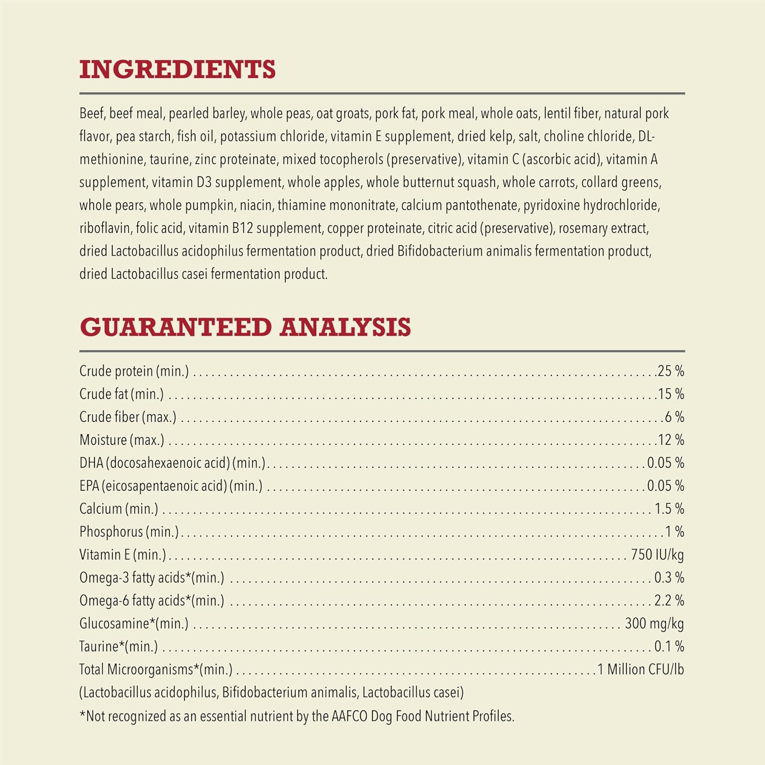 - Thoughtfully balanced recipes with protein-rich beef, wholesome grains, vegetables and fruit. Packed with nutrients, not fillers, for less than $1.40/day*.