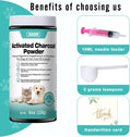 3. Our activated charcoal dog poisoning a delicate and odorless powder, for your convenience, we have attached a 5g teaspoon and a 10 ml needle feeder for better and faster absorption and digestion by your pet.