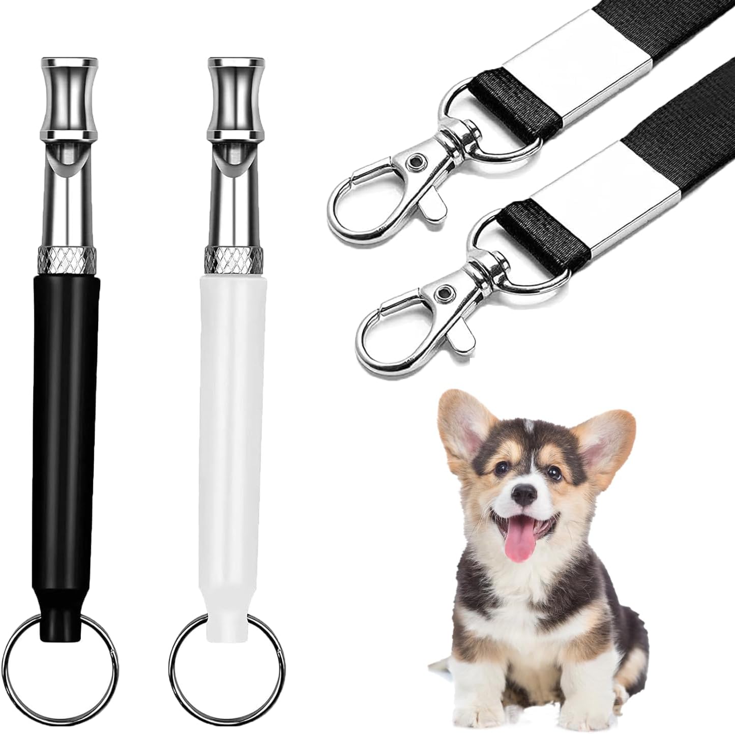 - 【Stop Dog Barking】lf your dog or your neighbor's dog keepsbarking,gently blow the dog whistle,the frequency emitted by thedog whistle can easily attract the dog's attention and stopbarking.Please keep your whistle command consistent, when yourdog does it right, give him a snack reward, approach to make yourdog a listening and obedient friend