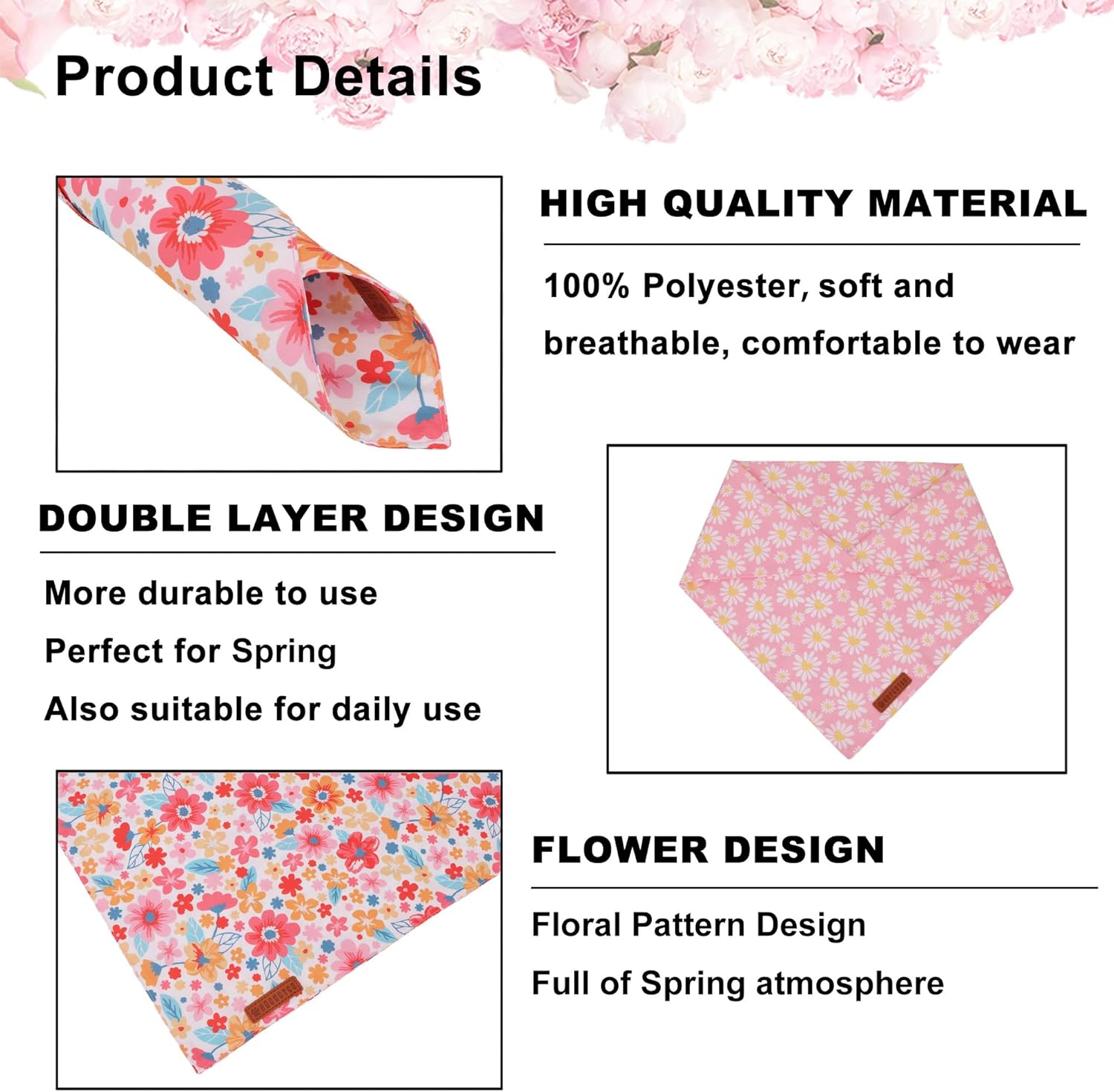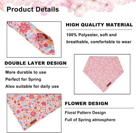 - Floral Dog Bandanas: Carefully designed colorful flower and pink daisy pattern, make your pet look more stylish and get many compliments.