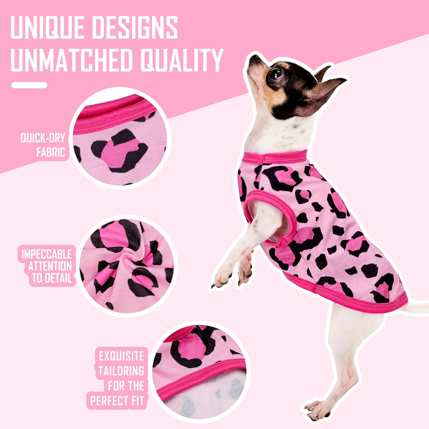 Adorable Pink Leopard Dog Shirt: Lightweight Polyester Cartoon Puppy Vest, Small Medium & Large Dog T-Shirt, Summer Pet Clothes, Cute Dog Apparel, Breathable Dog Tank Top XS