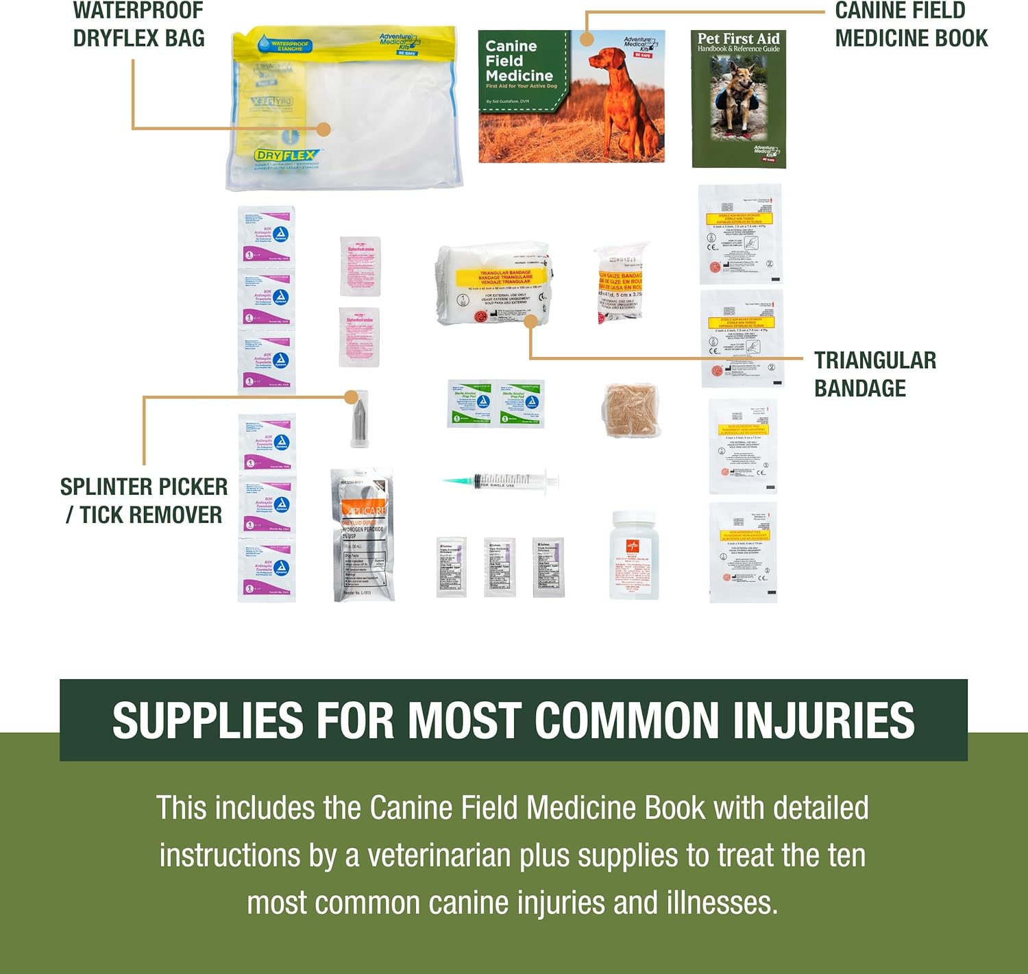 The included Canine Field Medicine book by veterinarian Sid Gustafson, DVM, teaches you how to effectively use the dog kit to provide the best care.