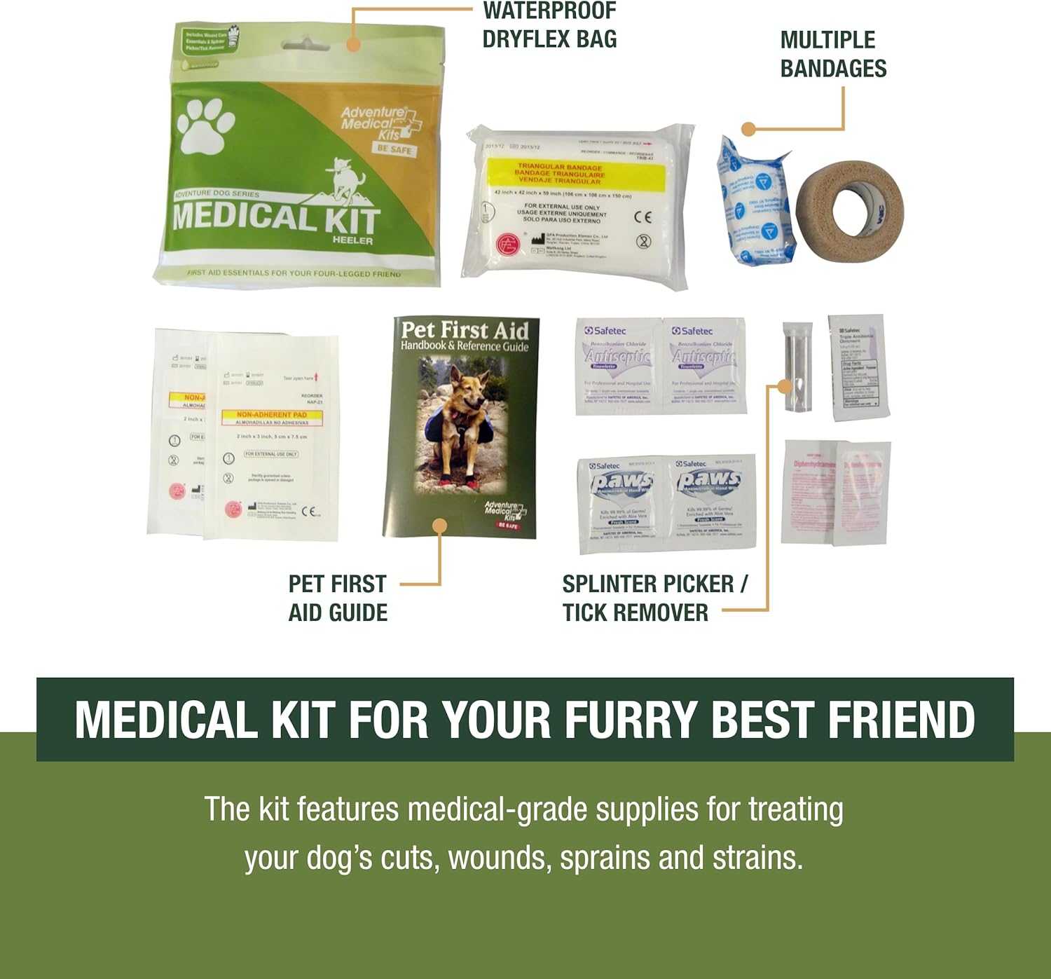 Medical-grade supplies for treating your dog's cuts, wounds, sprains and strains.