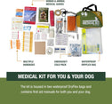 - Dual Purpose Design: This outdoor adventure first aid kit is meticulously crafted to provide both human and canine first aid essentials, ensuring you're prepared for any trail mishaps
