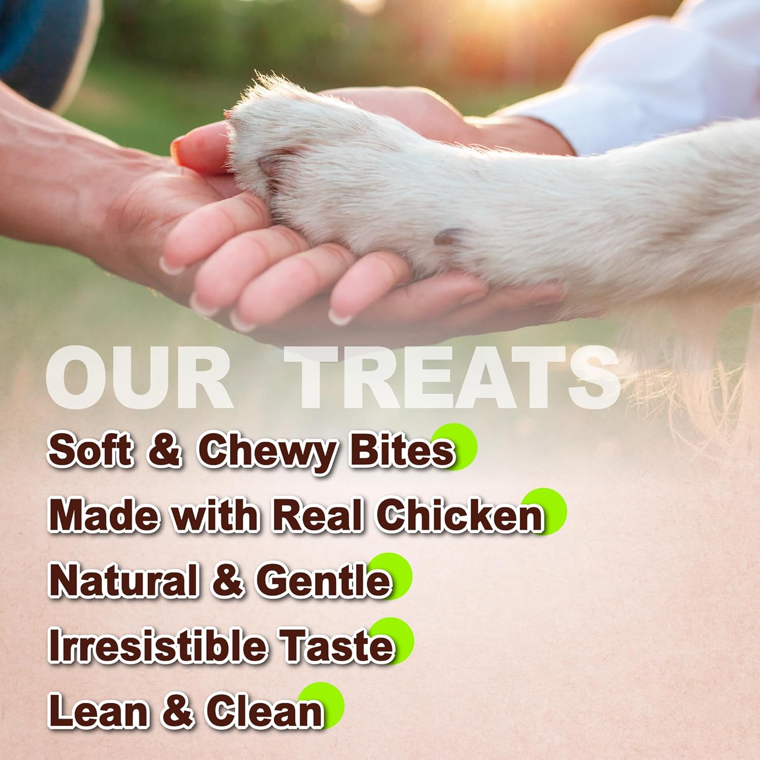 - Soft & Chewy Bites: These soft and chewy chicken treats are perfectly sized for all breeds and ages — easy to chew, easy to love. Their tender texture makes them ideal for puppies, seniors, or dogs with smaller mouths. Great for training, rewarding, or everyday snacking, these bite-sized treats offer a satisfying chew without being tough or crumbly.