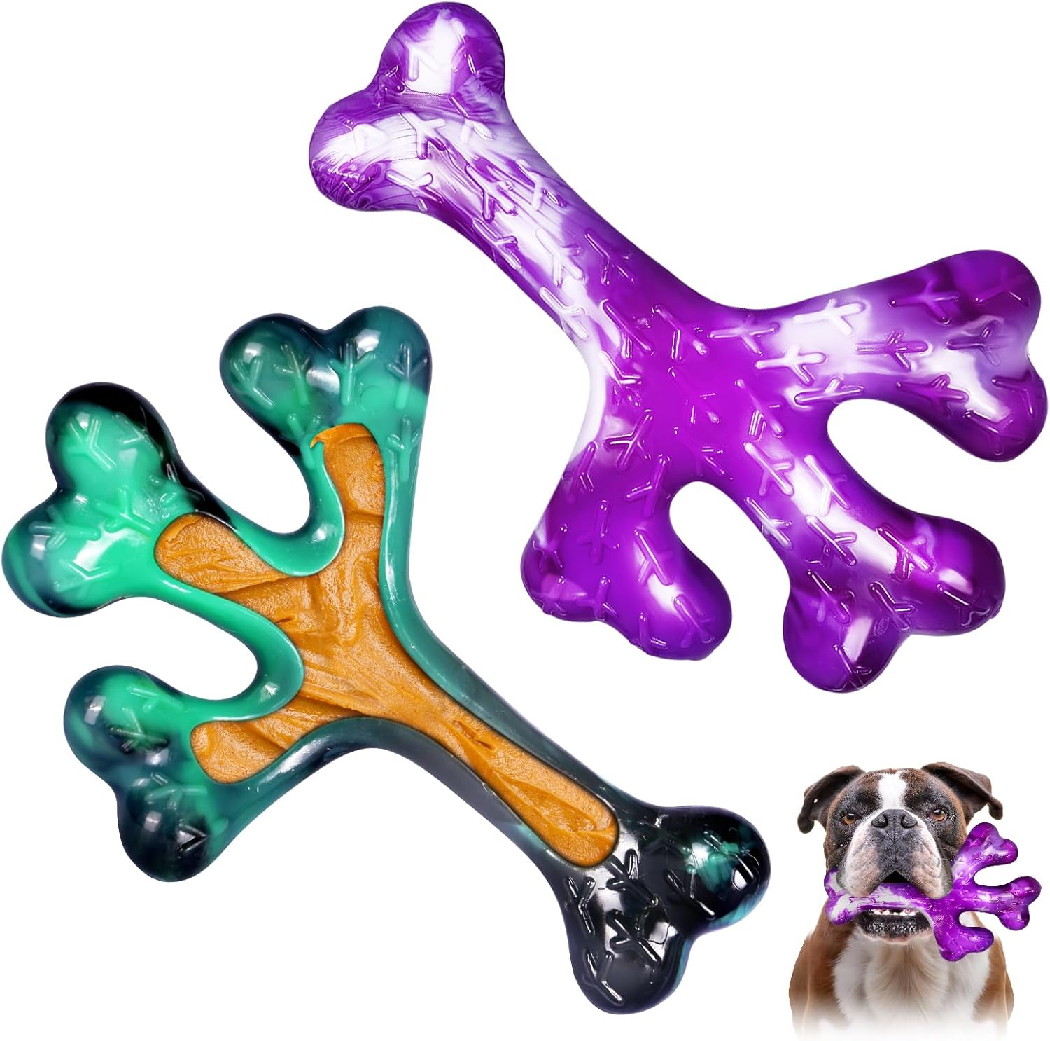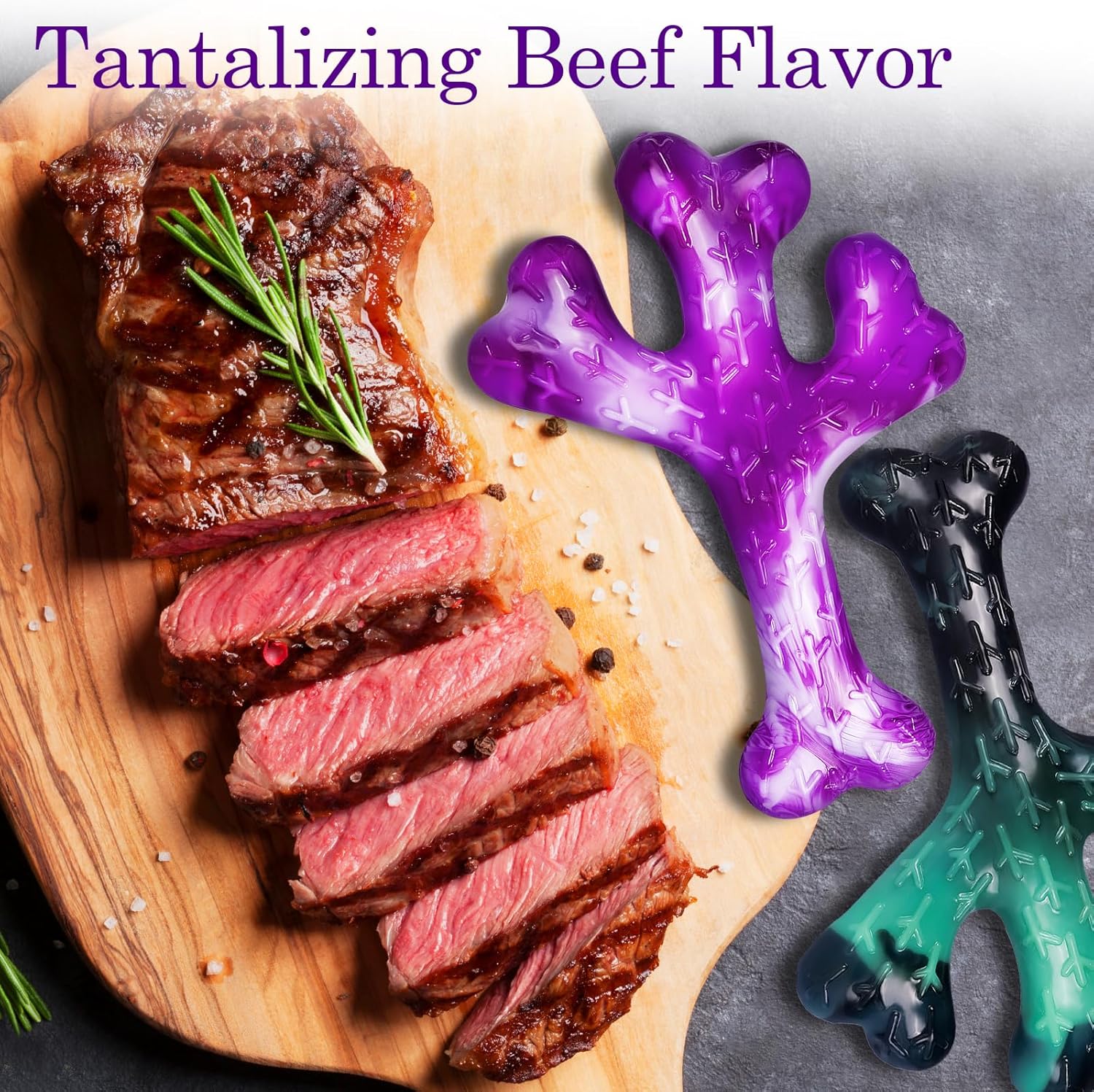 BEEF FLAVOR: 2 pack dog toys for large dogs are infused with the real beef flavor, making them irresistible to dogs. Your furry friend won't be able to resist sinking their teeth into these toys, providing endless entertainment and peace of mind even when you're on the go.