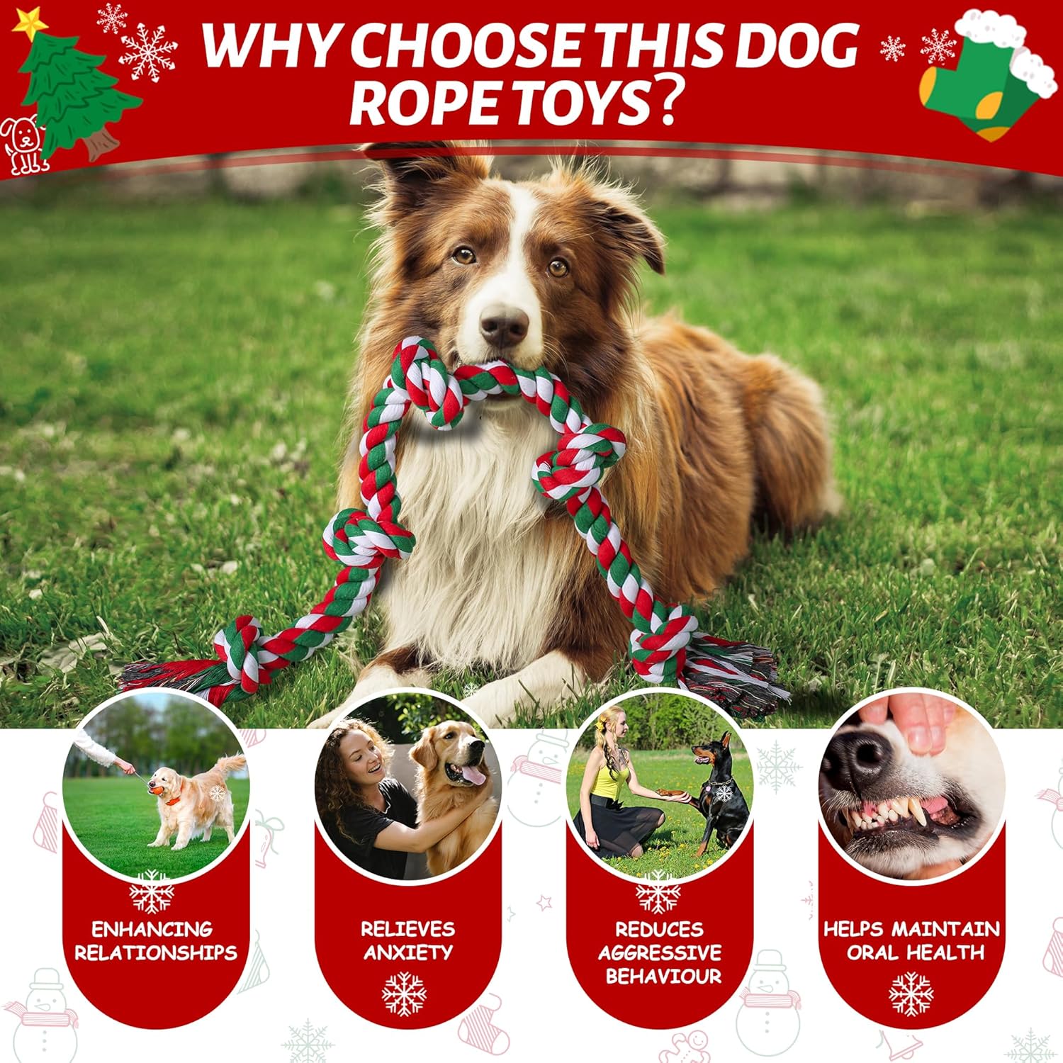 Aitmexcn Christmas Dog Rope Toys for Aggressive Chewers Large Breed, Indestructible Dog Chew Rope Toys, 5 Knots Tough Tug Toy for Teeth Cleaning, Tug of War