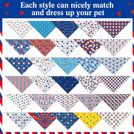 - Generous Bulk Pack for Multiple Pets: celebrate the 4th of July with Independence Day dog bandanas bulk; This pack includes 180 bandanas, featuring 30 different designs with 6 bandanas per pattern; Ideal for pet owners with multiple dogs or for sharing the festive sense at parties and events