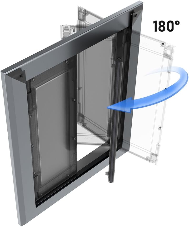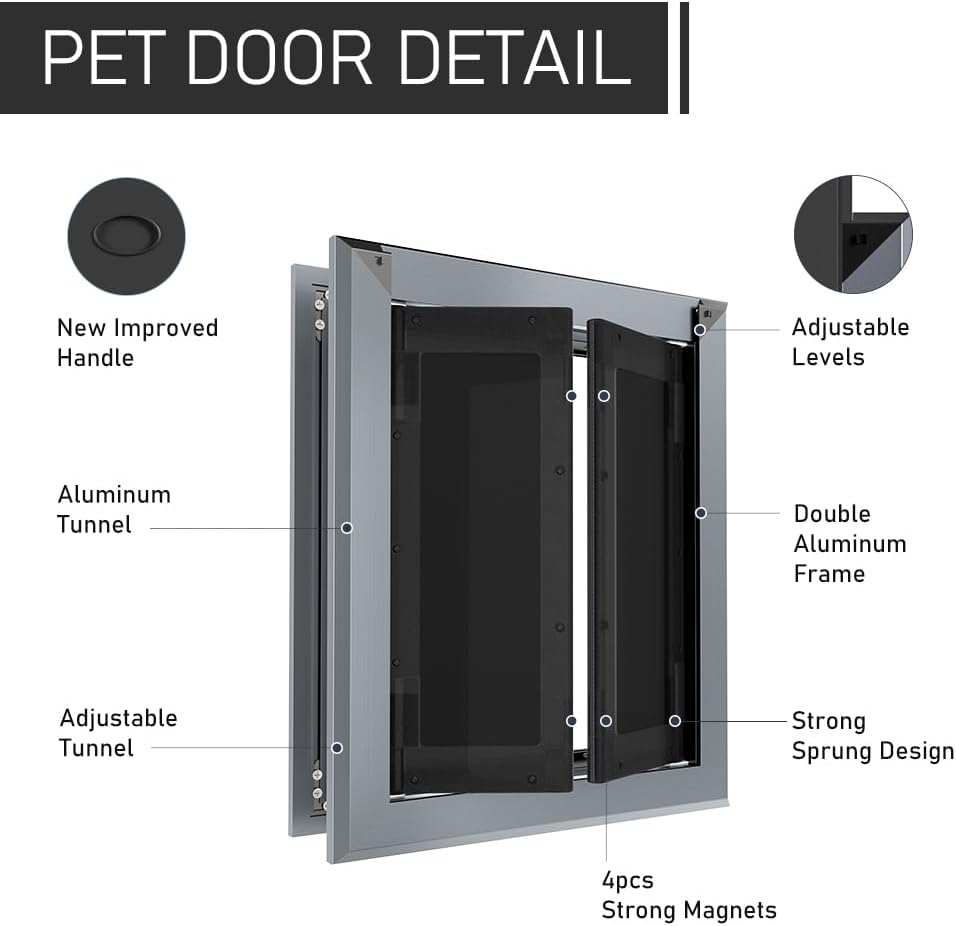 - 【FREEDOM & INDEPENDENCE 】The Aluminum frame of Aluminum material is designed with a backplate, solid magnets, and magnetic flaps that allow your dogs to enjoy free entry and exit, potty breaks, and playtime without your help. Easily prevent any unwanted guests from entering.
