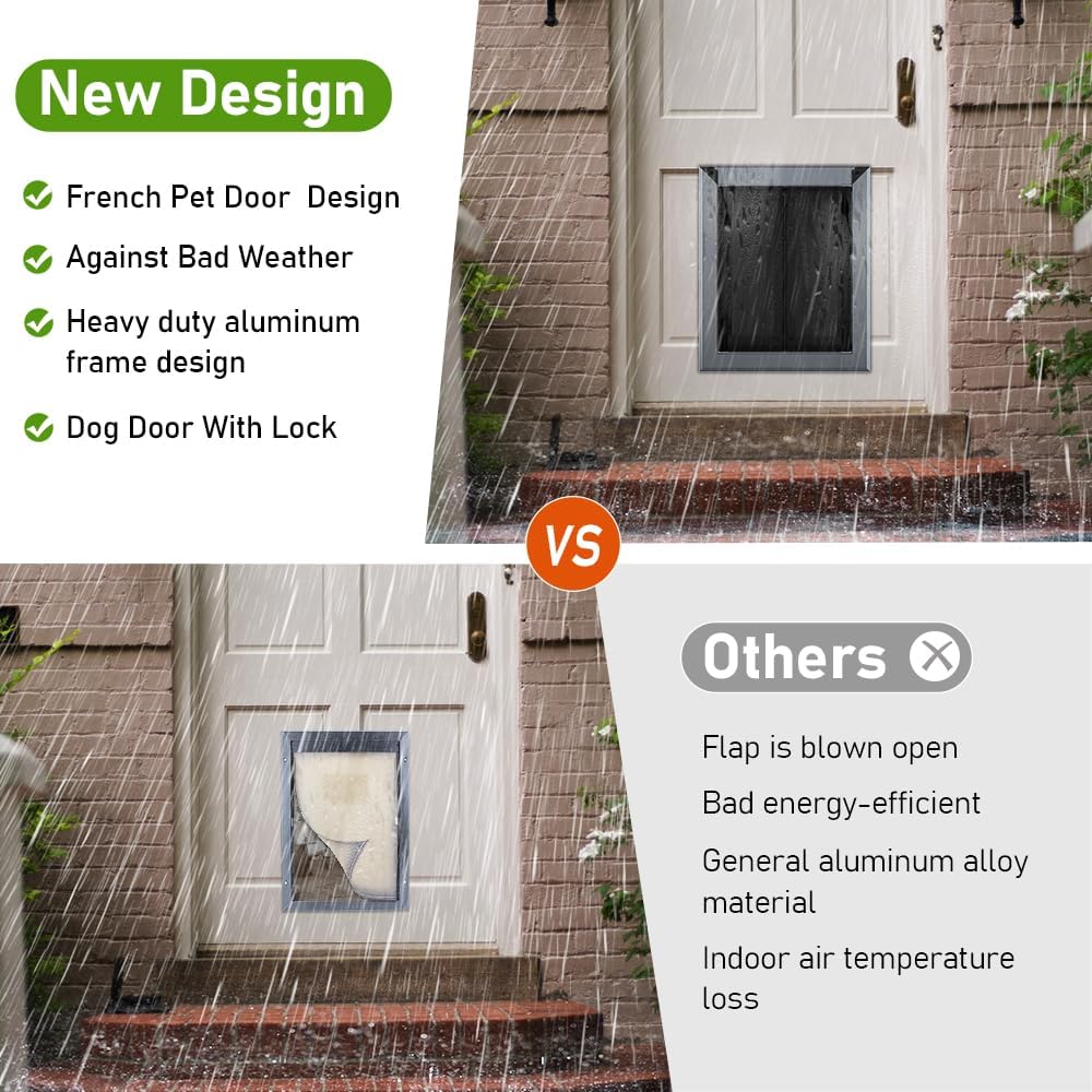 - 【STURDY & ENERGY-SAVING】 PATAPLUS Weatherproof Dog Doors are made of strong, high-quality Aluminum . Additionally, they feature Double slide-in locking panels to provide better protection for your home against extreme weather conditions and to reduce energy loss.