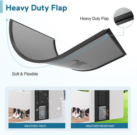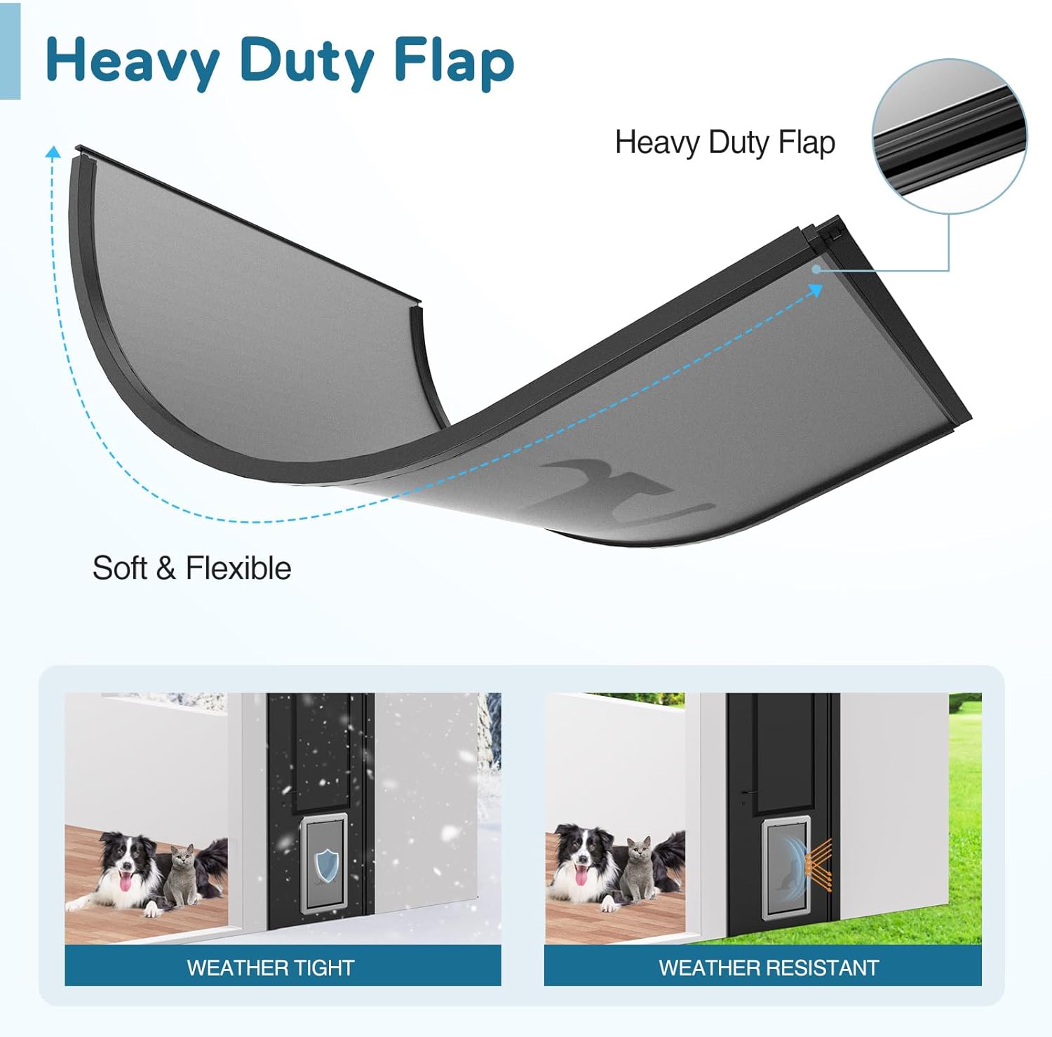 - Energy-Efficient: Dual flap design for weather-tightness and energy efficiency. With built-in strong magnetic strips can keep the xxl dog door automatically closed when your dog leaves, which can keep extreme weather and bugs out and keep the air condition in. Besides, the color of the flap is not too dark, with a little training, your pet will quickly adapt. They come with a lockable metal panel, You can use this lockable metal panel to prevent your pet from going out or some animals entering, If your dog door flap is damaged while you use it, we can offer one dog door replacement flap for you. This will reduce the cost of maintaining the dog door