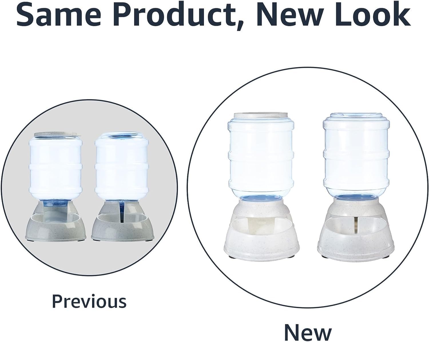 - Small food dispenser and water dispenser set for dog or cat; uses gravity to ensure a consistent supply