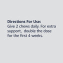 • Direction for use: 1 chew per day for dogs up to 15 lbs, 2 chews per day for dogs 15-45 lbs, 3 chews per day for dogs 45-75 lbs, 4 chews per day for dogs over 75 lbs