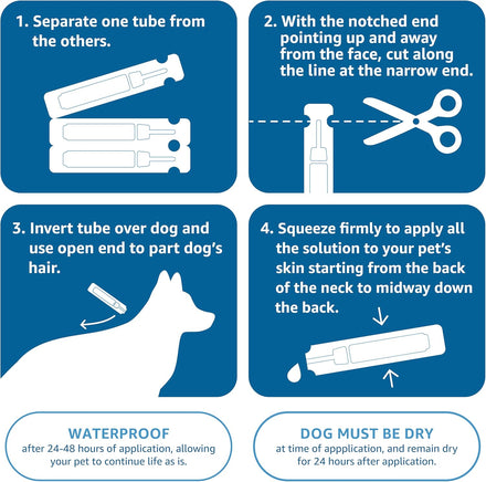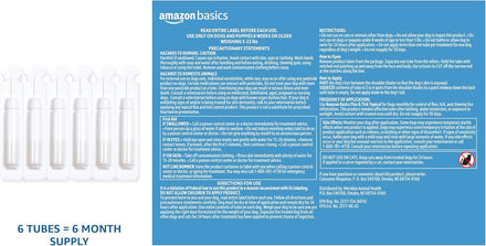 Amazon Basics flea and tick topical for Dogs kills fleas, flea eggs, flea larvae, ticks and chewing lice. The fast-acting, long-lasting treatment is formulated to protect your dog against dangerous pests. It breaks the flea life cycle by killing flea eggs and larvae and kills ticks, including deer ticks that may transmit Lyme disease. For best results, apply once a month to protect your dog from fleas and ticks.
