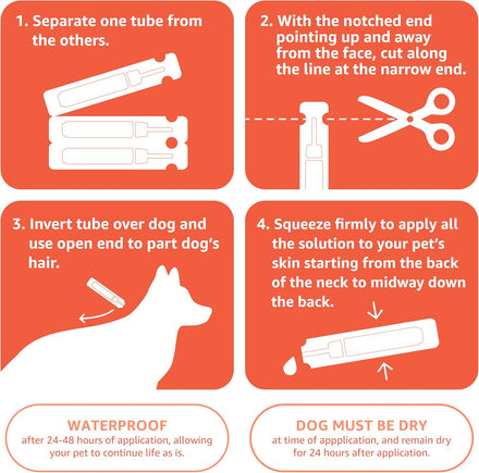 - Waterproof: 24 hours after applicaiton your pet's treatment is protected against rain and water activities