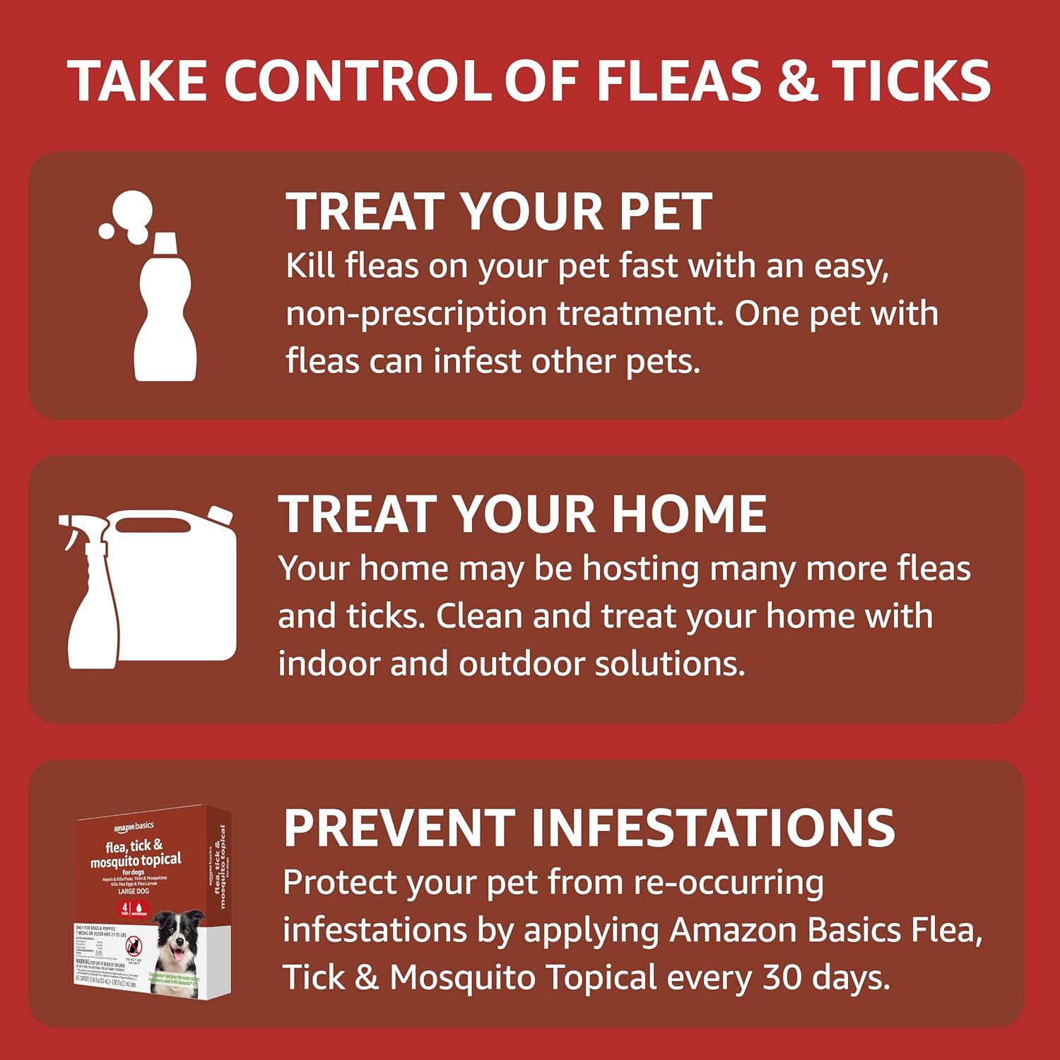 - Amazon Basics Flea, Tick & Mosquito starts eliminating fleas and ticks within 24 hours of treatment
