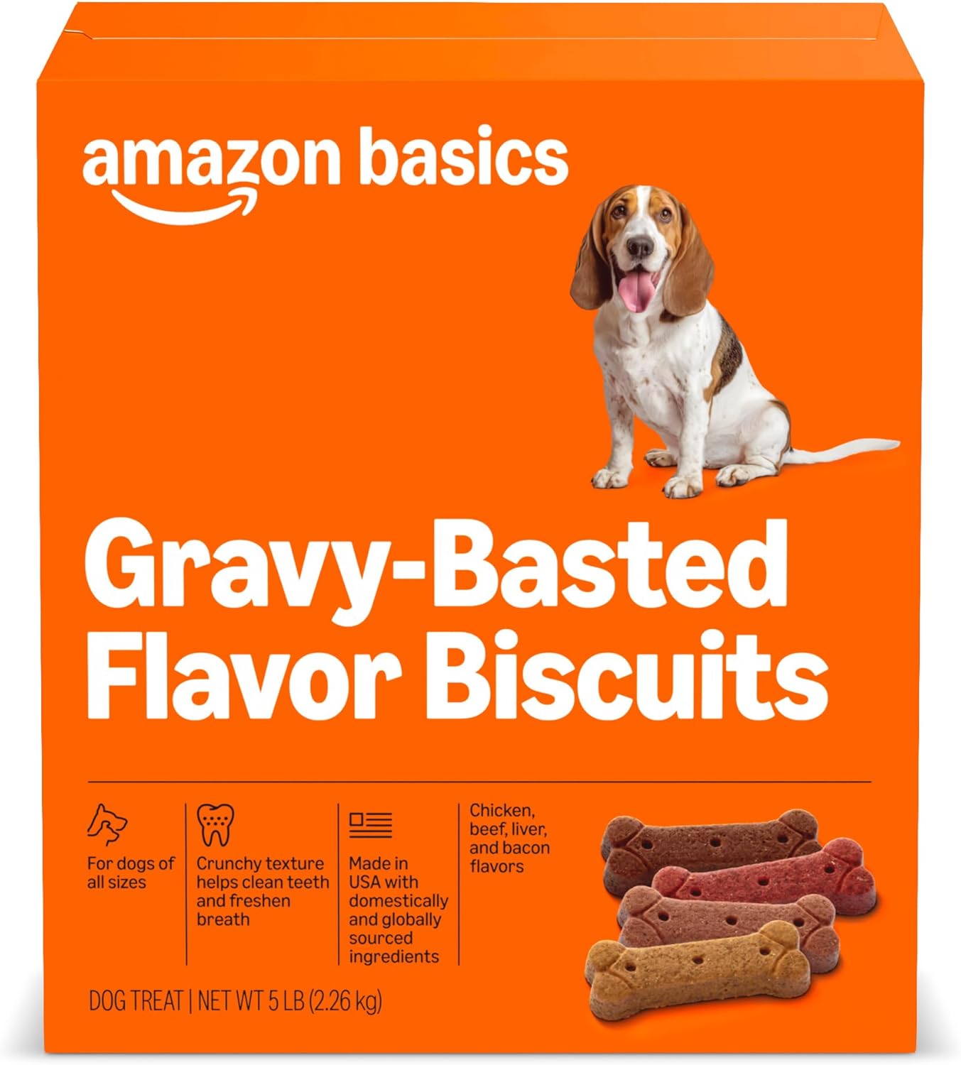 Amazon Basics Gravy Basted Flavor Biscuits Dog Treats 5 lb. Box