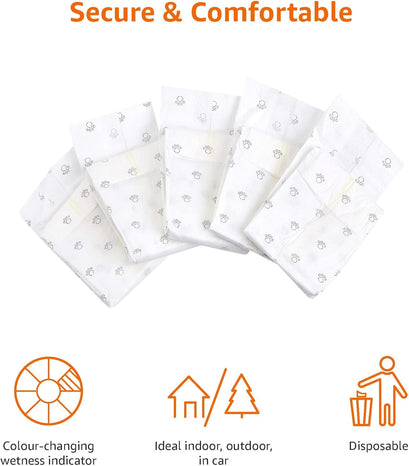 - Color-changing wetness indicator for knowing at a glance when diaper is wet and needs changing