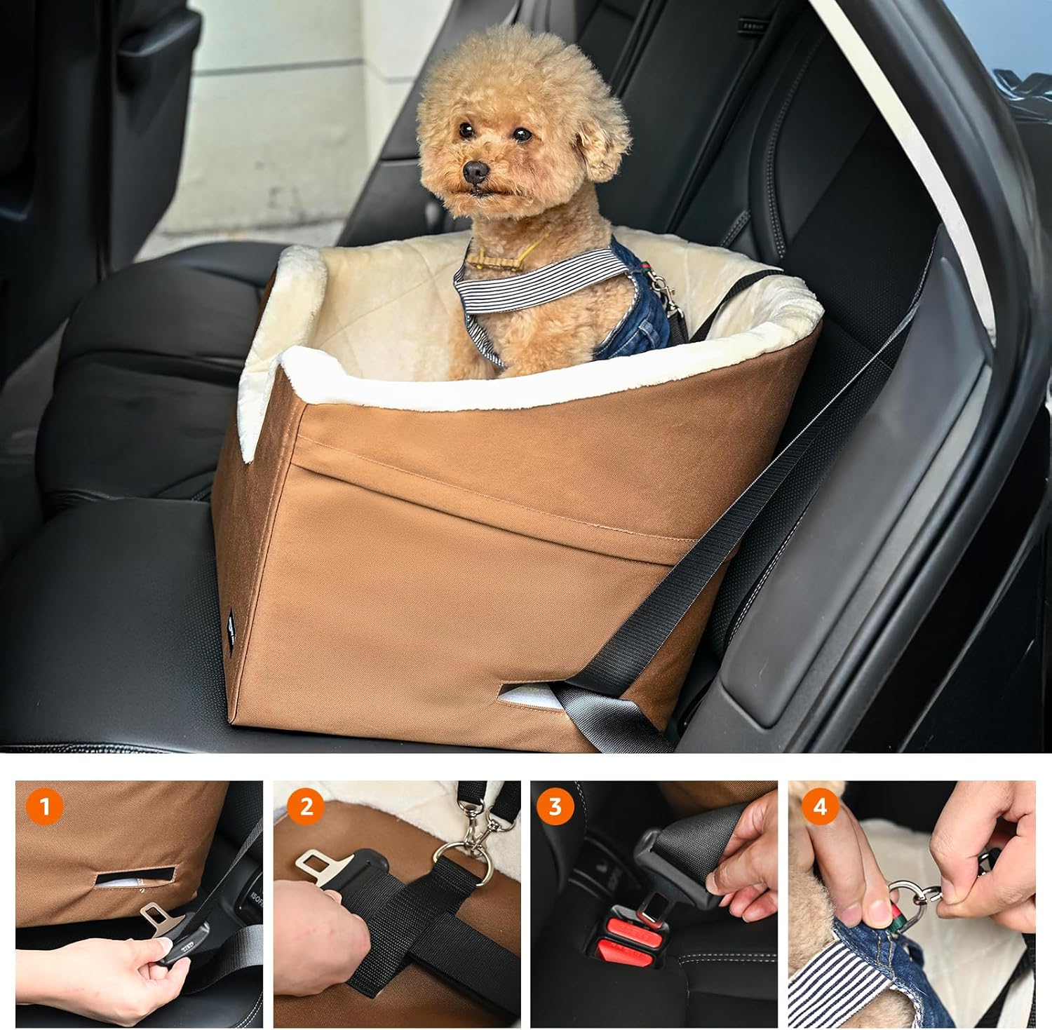 - Bucket-style booster seat keeps pet in one place for distraction-free driving; fits in front or back seat of vehicle