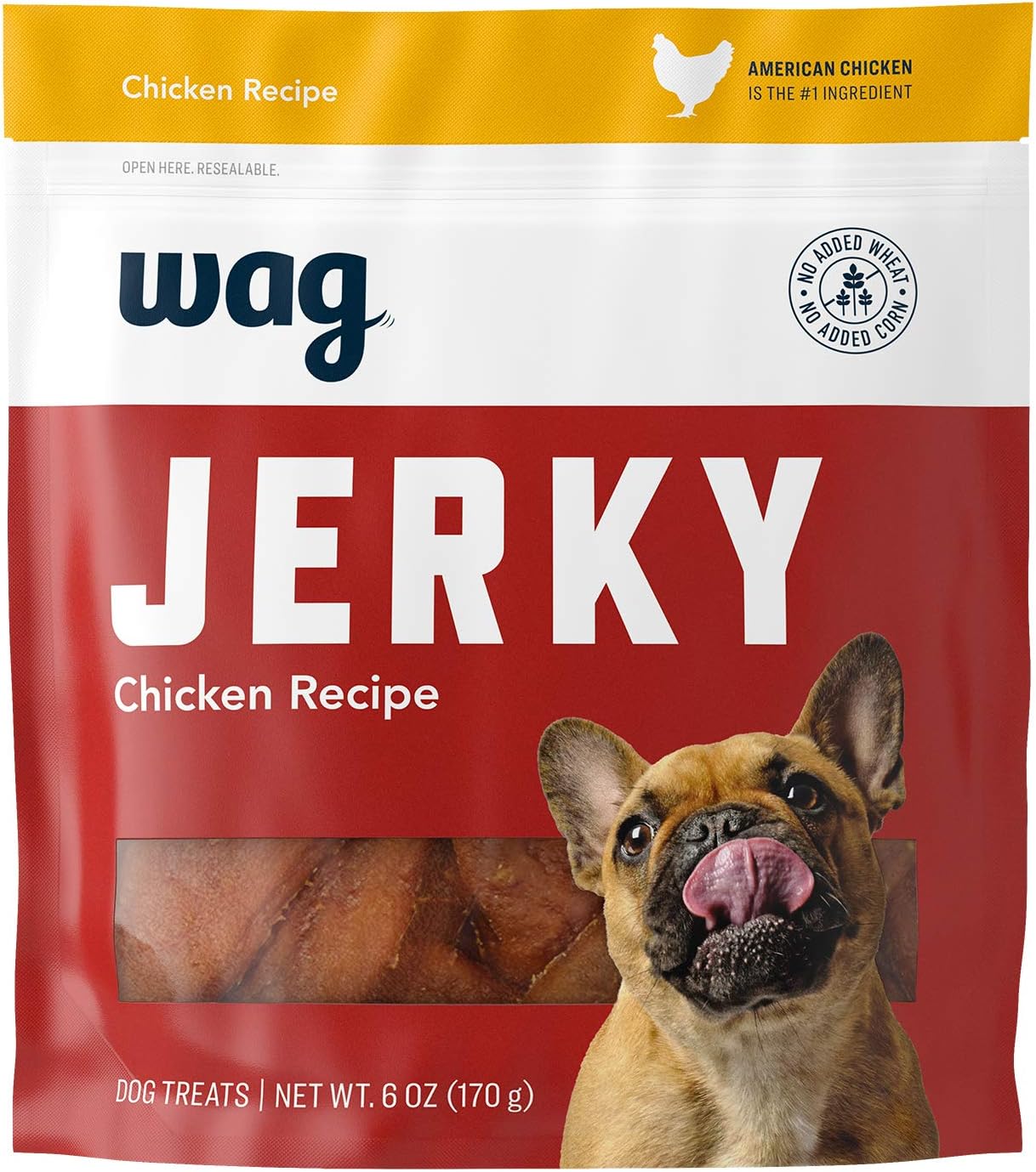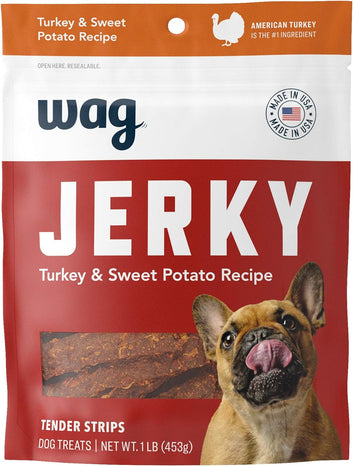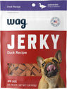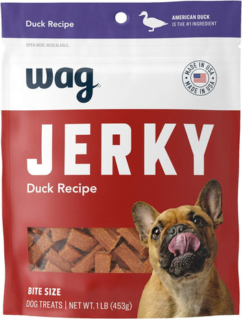 wag American Duck] in product_description: ['Wag American Duck Jerky Bite Treats for Dogs is a limited ingredient recipe with American duck as the #1 ingredient. Made in the USA. No added grain, corn, soy, or wheat; No added colors or artificial flavors.