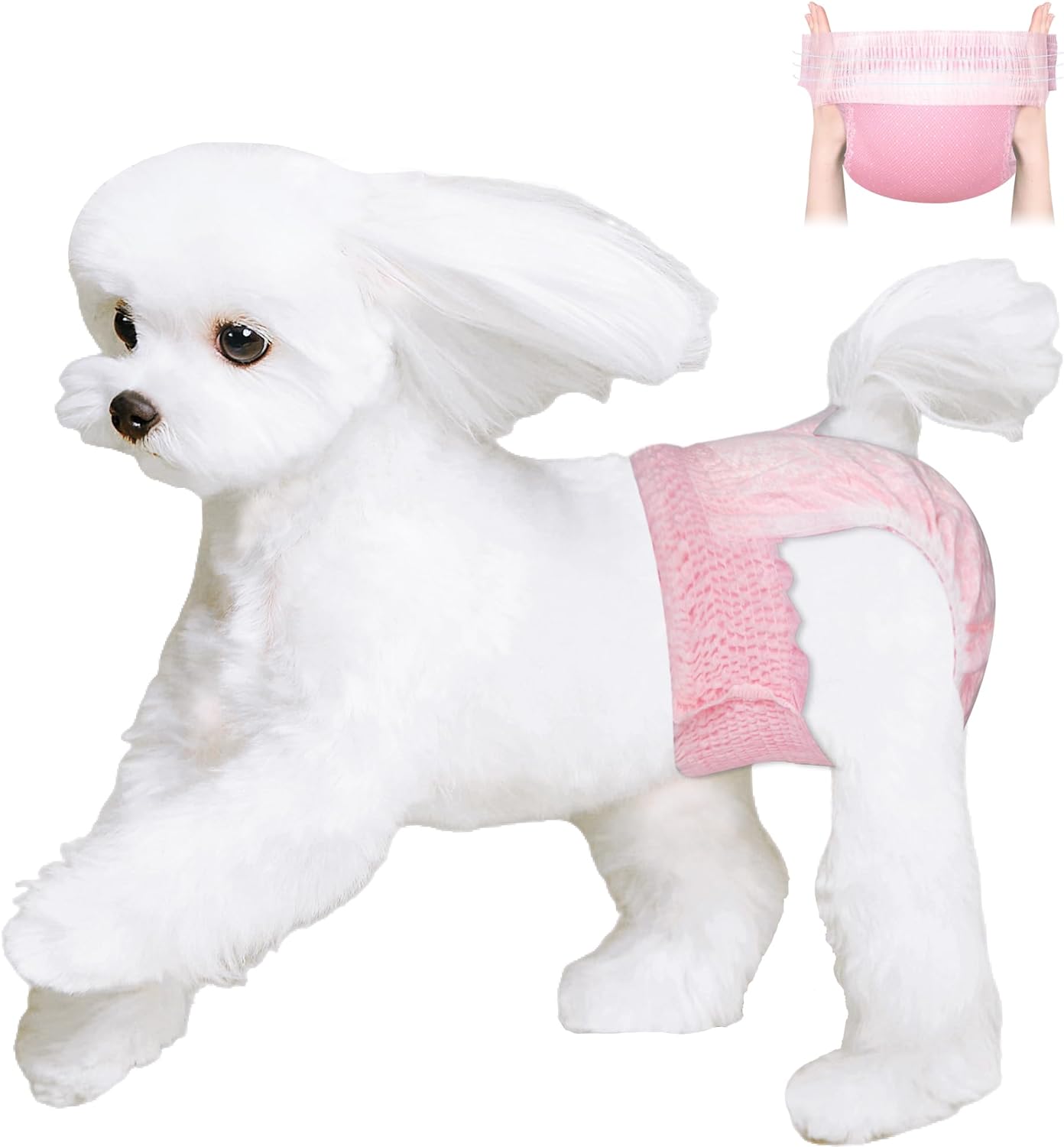 - Libertad, comodidad: disponible en un paquete de 10, nuestro pañal para perros tiene un agujero para colocar fácilmente la cola de tu perro sin sujetarla. Nuestros pañales tienen elástico en ambos bordes de las piernas para un cómodo movimiento de las piernas. Los pañales suaves y desechables para cachorros están hechos de tela no tejida de alta calidad y película transpirable que no causará molestias a tu mascota.