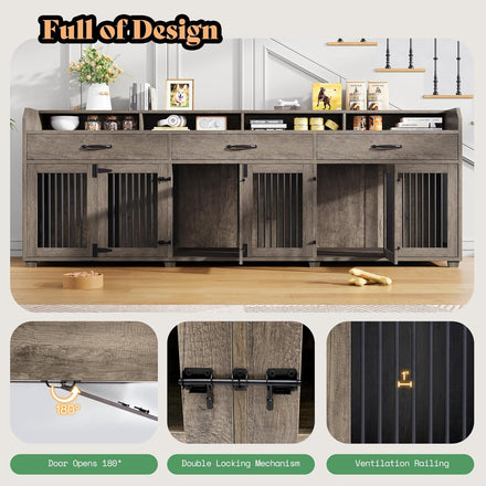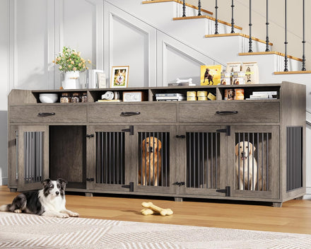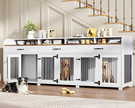 - EXTRA LARGE CRATE SPACE – Oversized 95" indoor wooden dog crate fits medium to large breeds like Labrador, Golden Retriever, and German Shepherd. Multi-room design ideal for multi-pet homes, giving each pet a safe, cozy space
