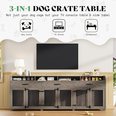 Three-in-one functionality for versatile use. Can serve as a dog crate, TV stand, and sideboard.