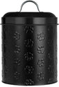 - FUNCTION AND FASHION - This metal food or treats canister features a black coated finish with embossed paws throughout.