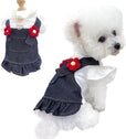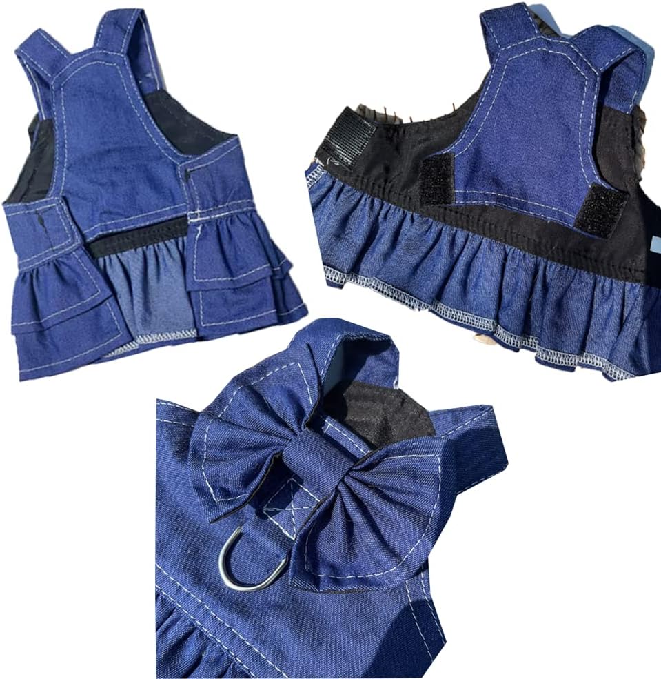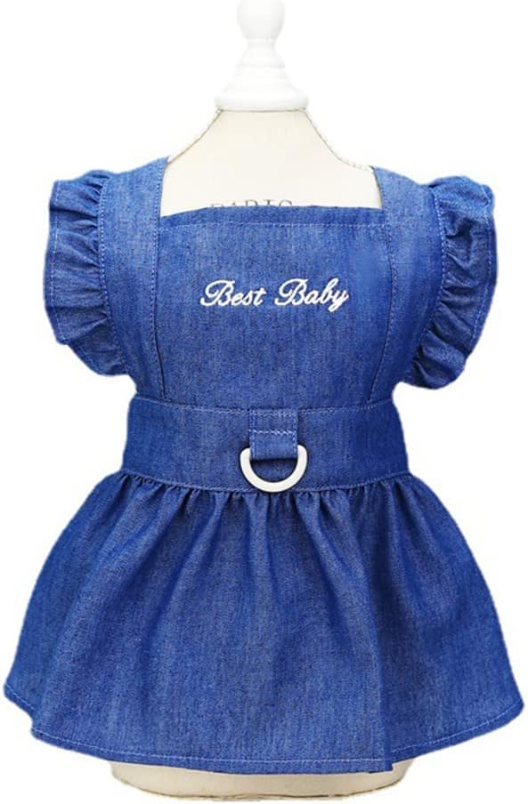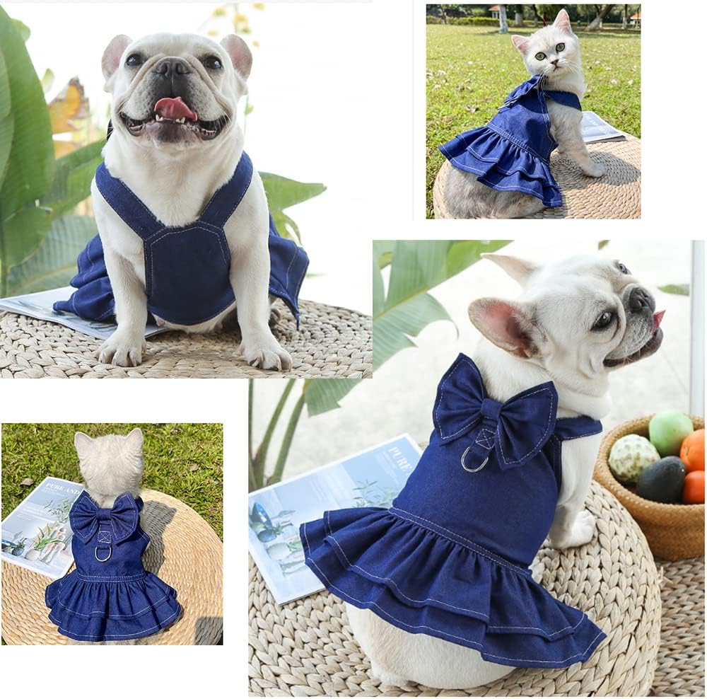 ANIAC Denim Dog Dresses for Small Dogs Puppy Girl Clothes with Leash Ring and Cute Bow Knot Summer Cat Apparel with D-Ring Blue Girl Dog Clothes (DAR Blue,Large)