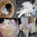 The dog wedding attire is a princess style with exquisite design, sophisticated Embroidery pattern is eye-catching and matching the fluffy tulle skirt, your lovely fur baby will be more charming and elegant.
