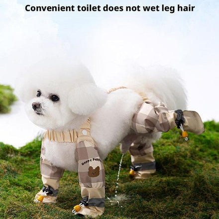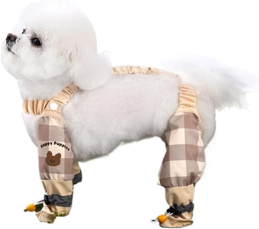 Specifications: Material: PU Size: See dimensional drawing Feature: Adjustable shoulder straps for a comfortable fit Adopting an adjustable shoulder strap design, suitable for small and medium-sized dogs, ensuring a stable fit without restricting movement, suitable for walking, hiking, or going out on rainy days. Four leg full wrap protection Full coverage design, protecting dogs' limbs from mud, snow, and wet grass, keeping them clean and dry, more practical than traditional rain boots or wet wipes. Specially designed for small and medium-sized dogs Provide multiple size options, measure your dog's body size according to the size chart to obtain a comfortable and stable wearing experience. Waterproof elastic fabric High density waterproof material combines toughness and elasticity, is breathable and easy to clean, and effectively protects against moisture during rainy days or muddy roads. Anti slip rubber sole ensures safety The textured rubber sole enhances grip and prevents slipping and falling off when walking indoors and outdoors, making it safer more than ordinary rain boots. Note: 1.Due to manual measurement, there may be a 1-3mm error in product dimensions. 2.The color of the product may have errors due to objective reasons, and the actual product is the main focus. The product includes: 1 * Outdoor Dog Dust-Proof Pants