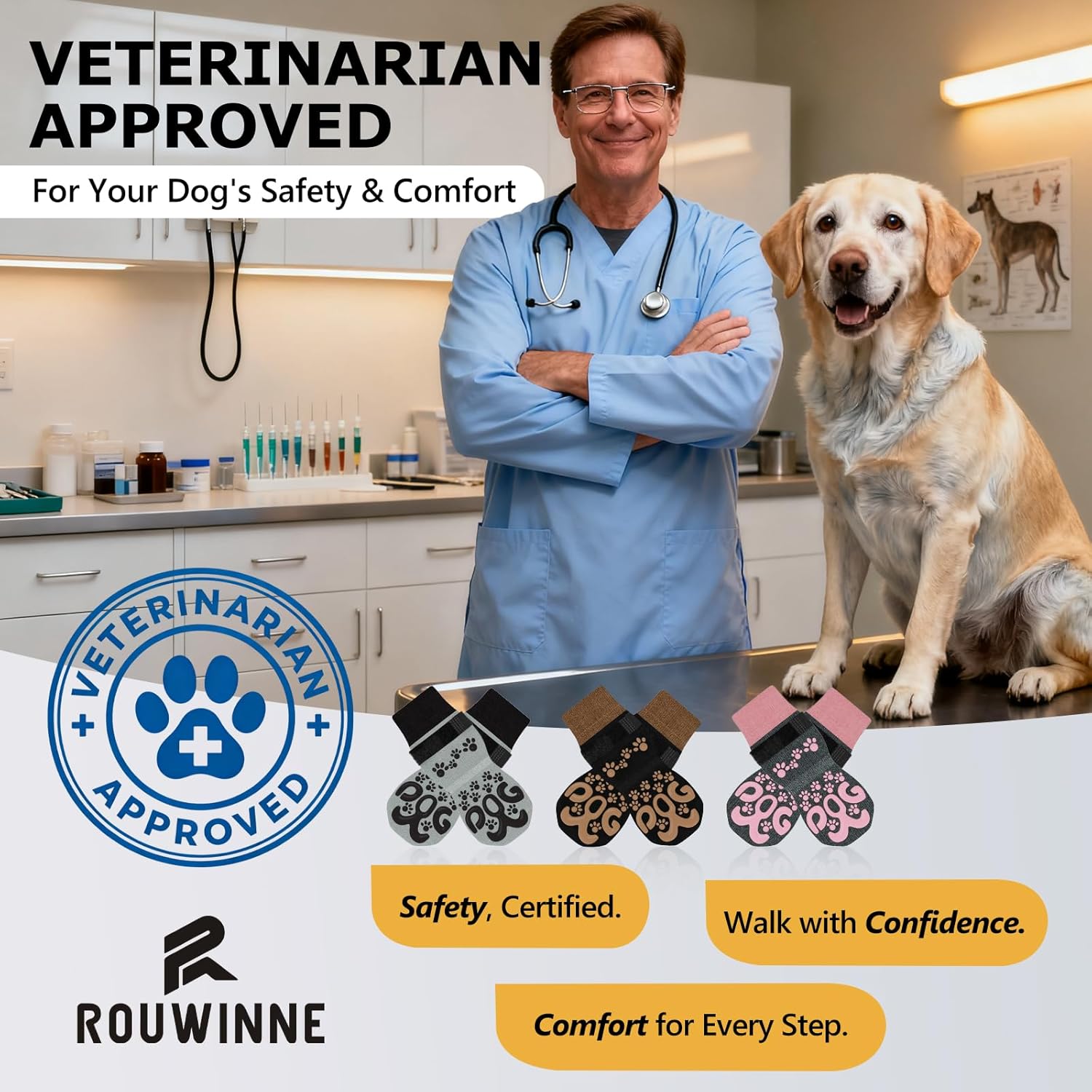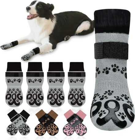 • SIZE: The dog socks are available in a variety of sizes to choose from, suitable for small, medium and large dogs, and there are 4 socks inside a set. These dog socks are more suitable for senior dogs, dogs with suffering arthritis, with unstable walking, chewing problem or with allergies. Please measure your pet's size before purchasing, if your size is between two sizes, it's better to choose the smaller size, because our dog socks are elastic fabric and can be stretched properly.