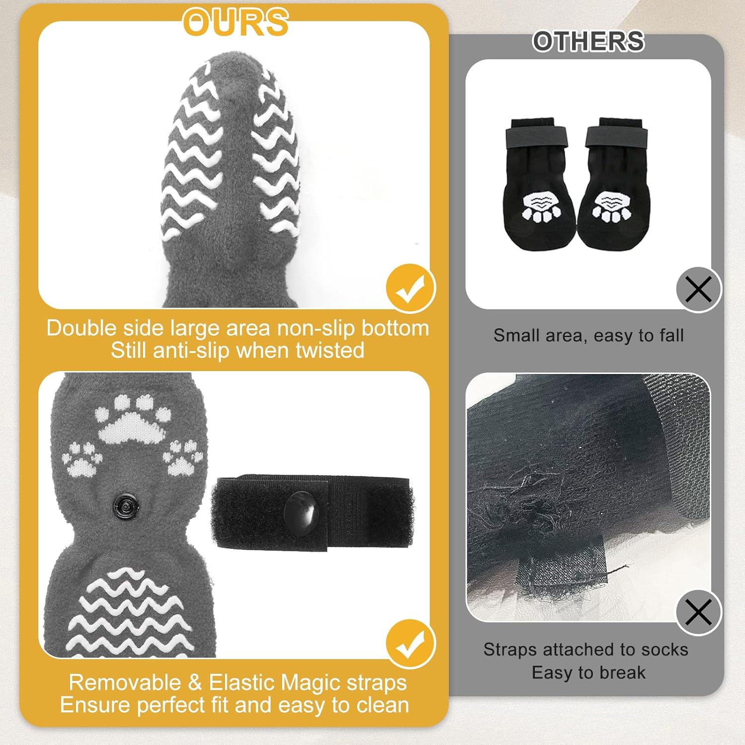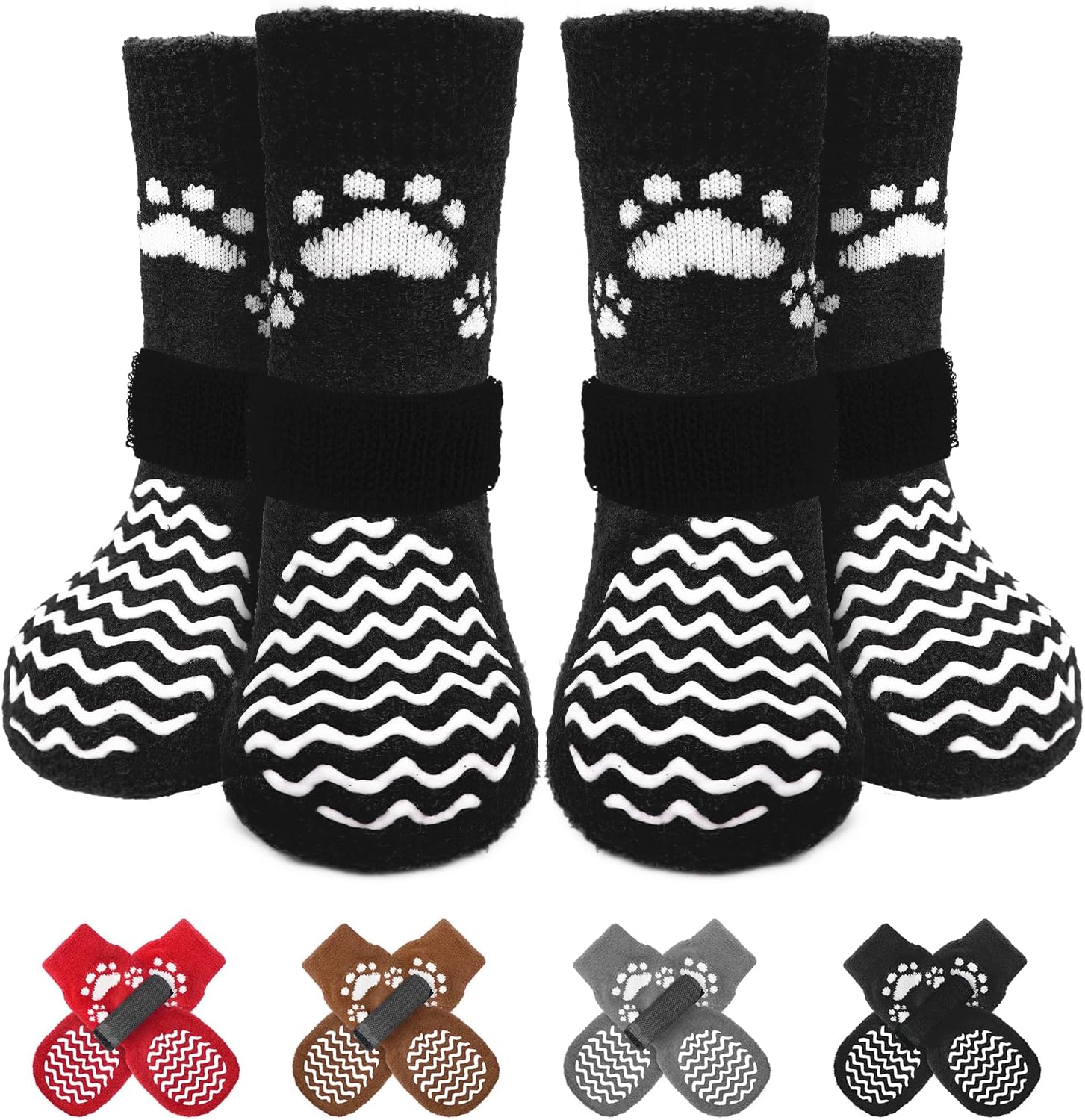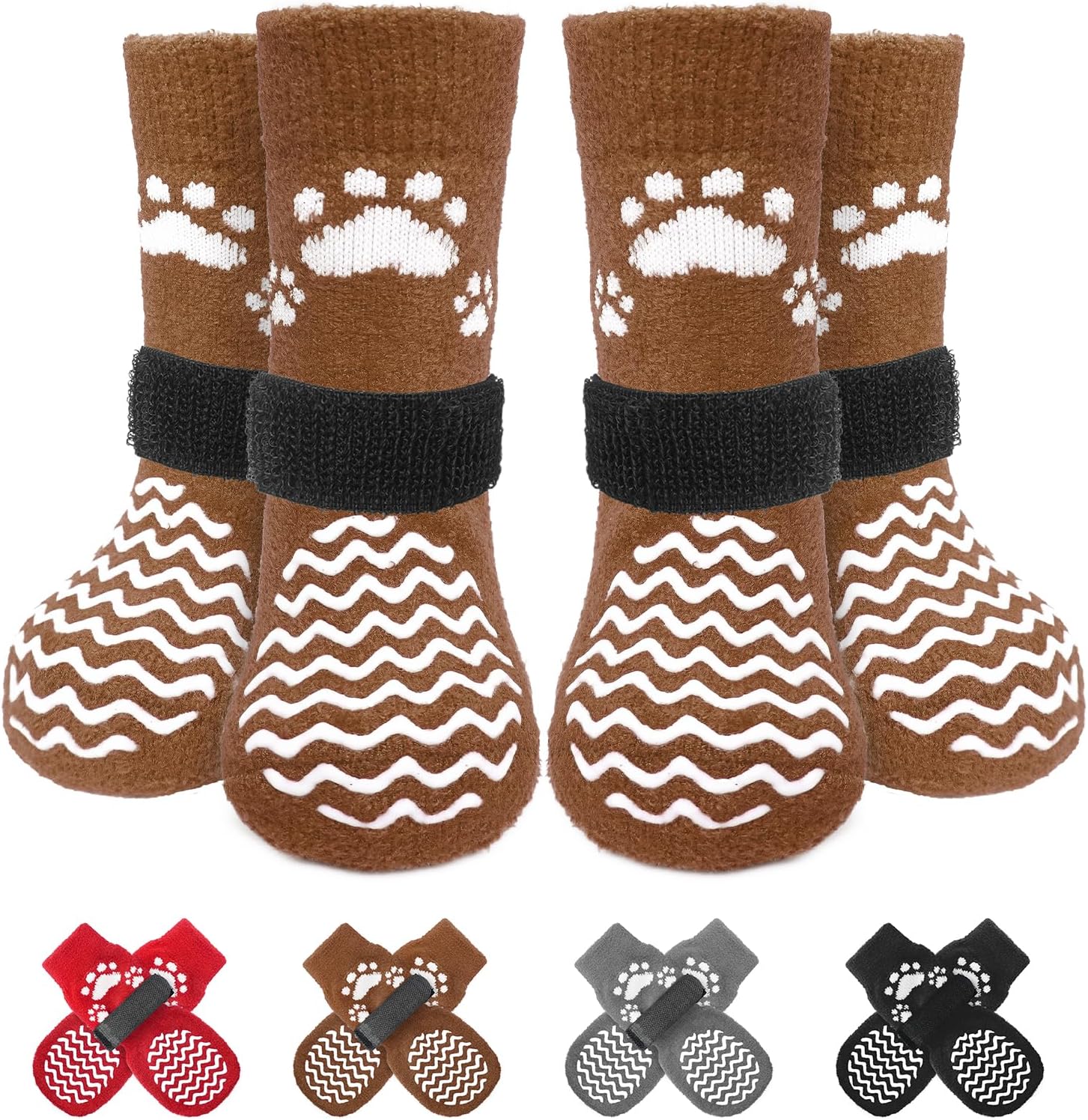 Anti Slip Dog Socks with Grippers for Hardwood Floors, Dog Shoes for Hot/Cold Pavement, Boots & Paws Protectors to Prevent Licking, Traction Booties for Senior Small Large Dogs