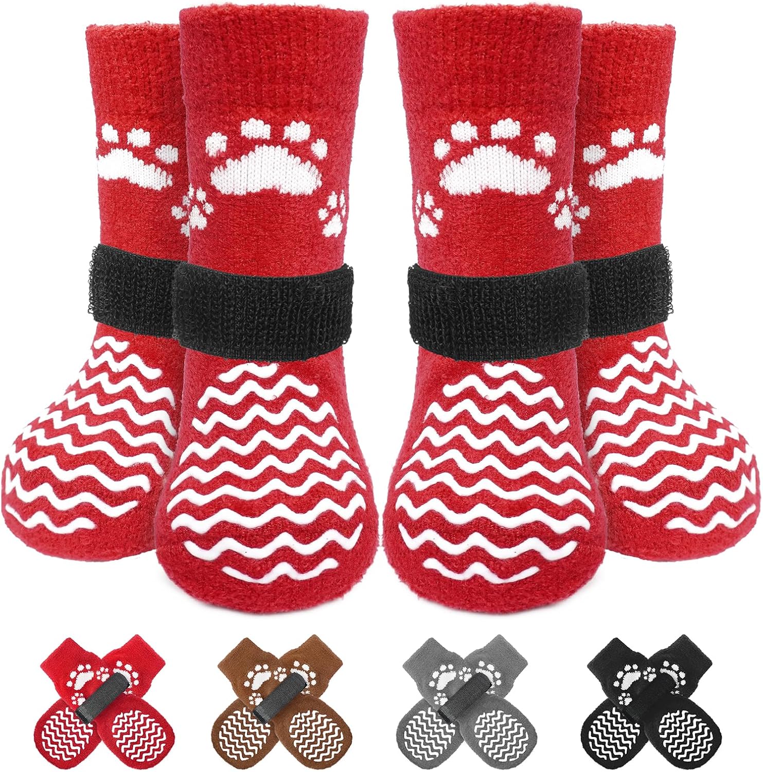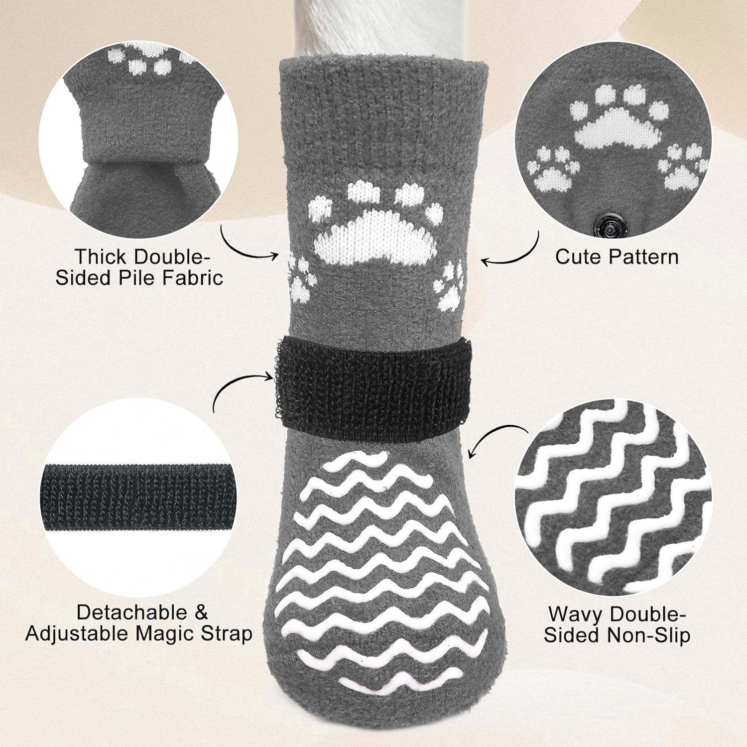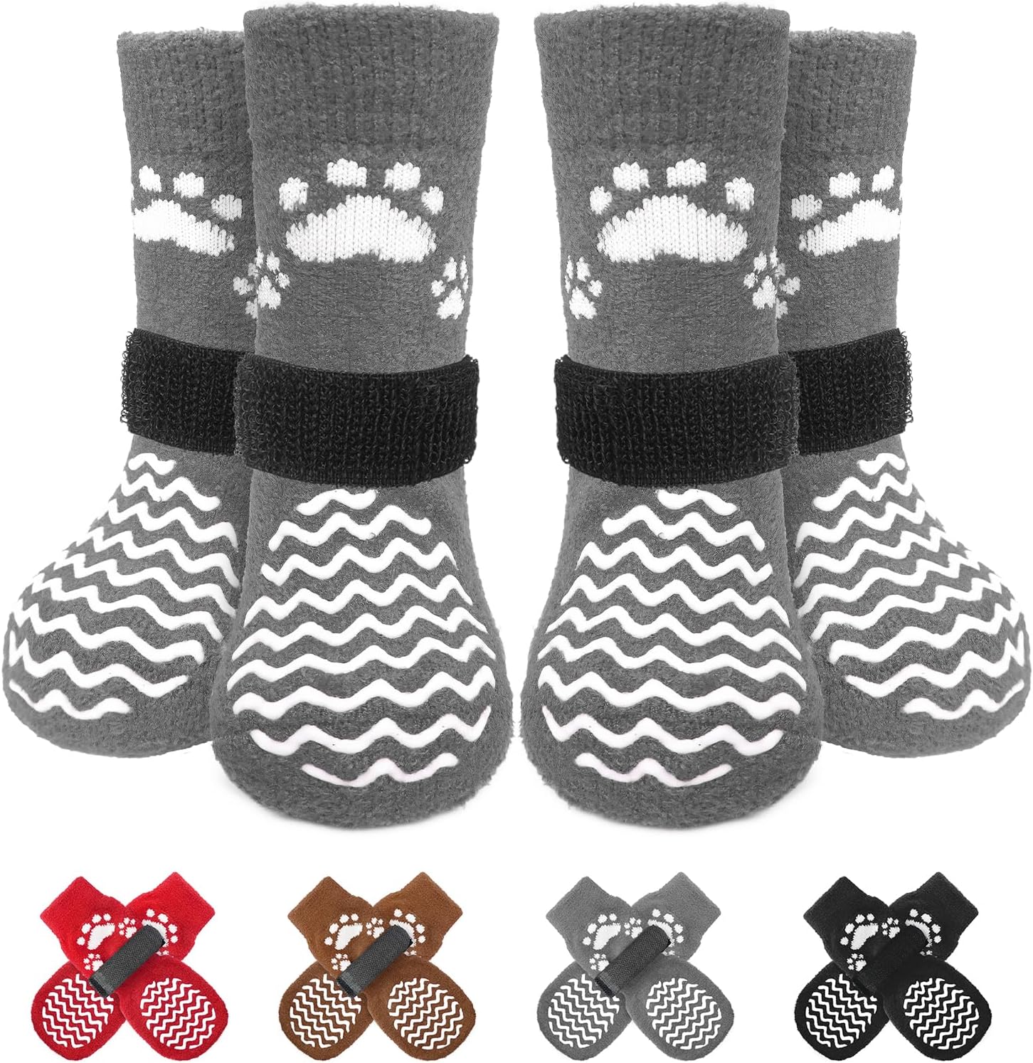 Anti Slip Dog Socks with Grippers for Hardwood Floors, Dog Shoes for Hot/Cold Pavement, Boots & Paws Protectors to Prevent Licking, Traction Booties for Senior Small Large Dogs