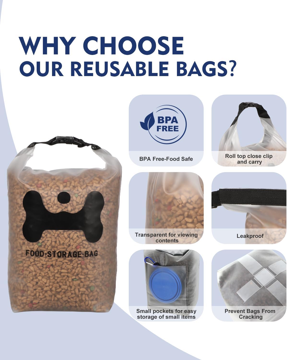 - Premium Silicone Material:Crafted from high-quality food-grade silicone, this bag is non-toxic, BPA-free, and safe for your pet's food. It's also durable and easy to clean, ensuring long-lasting use.