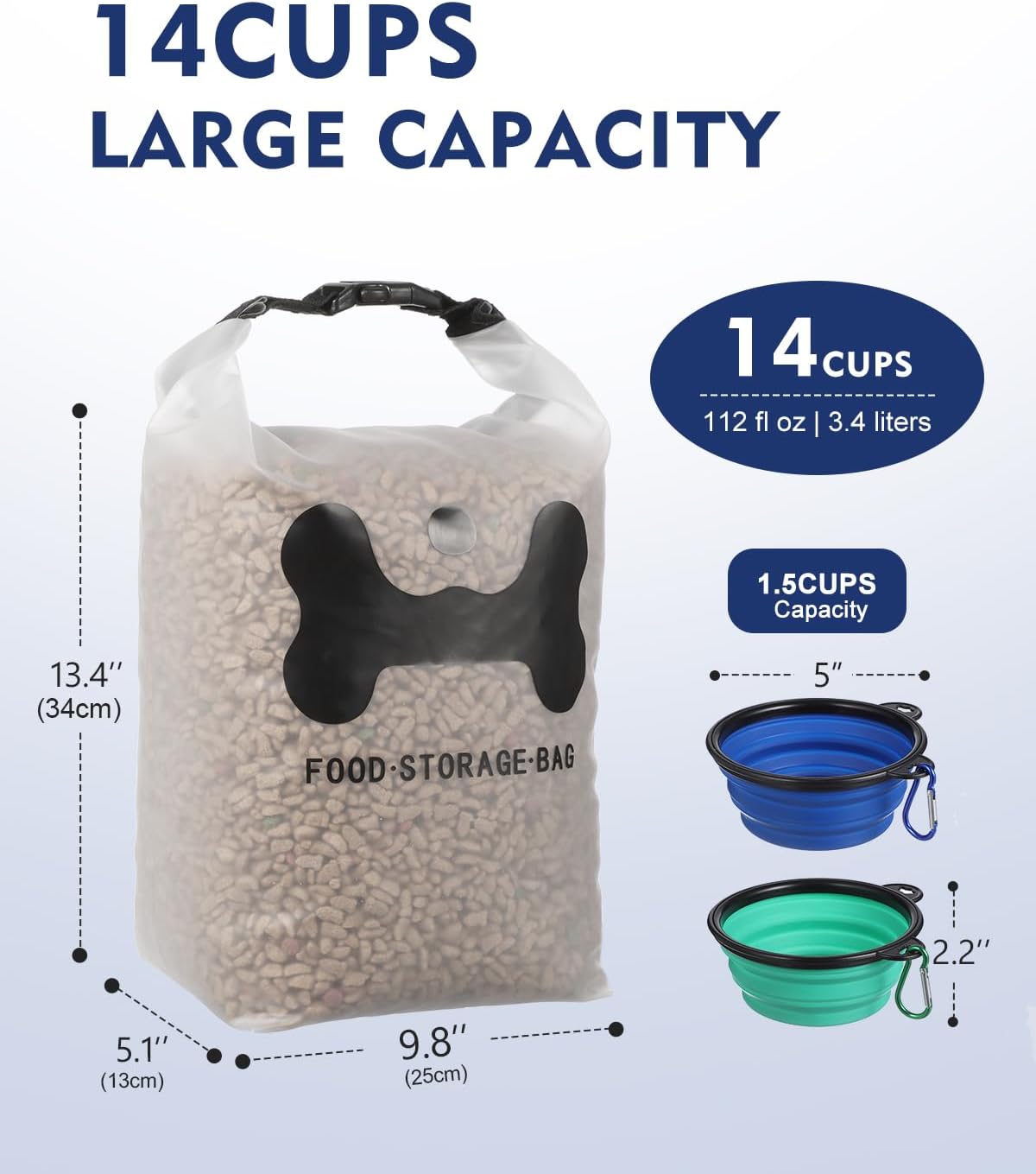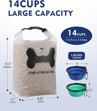 - Generous Capacity: With a whopping 14-cup capacity, this silicone storage bag can accommodate large quantities of dog food, making it ideal for multi-pet households or extended trips.