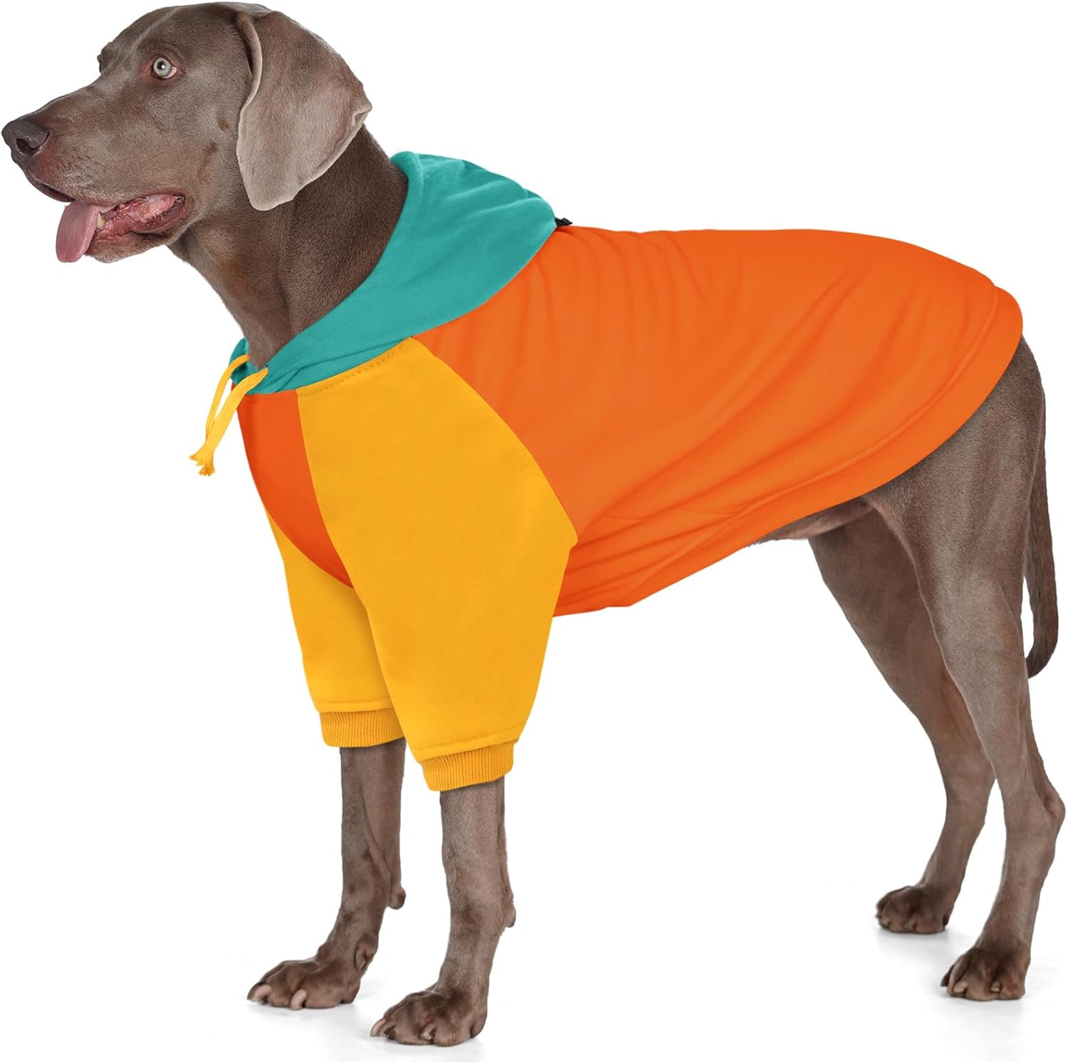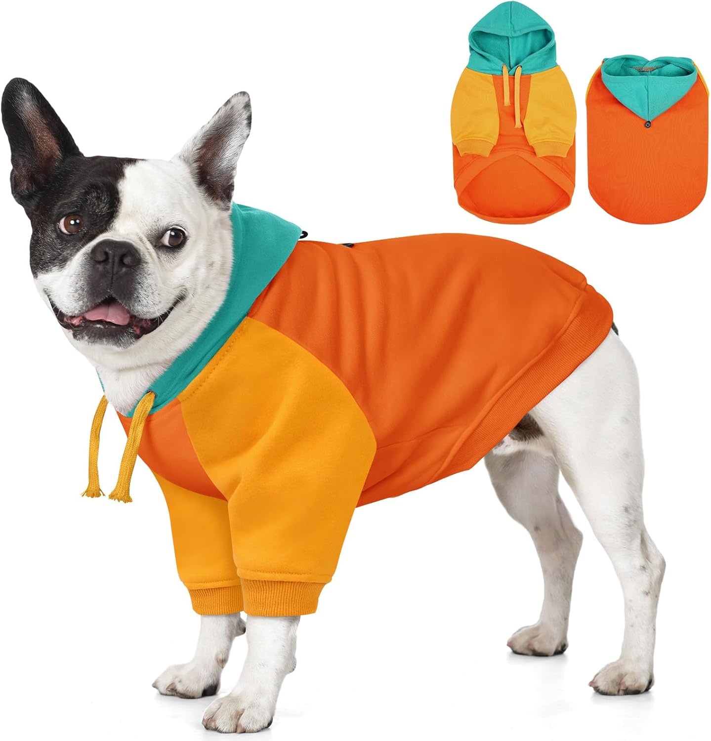 - Eye-Catching Color Block Design: Our dog hoodie features a bold color-block style that creates a striking visual impact. This trendy design ensures your dog stands out, turning heads during every walk and making them the most fashionable dog in the park