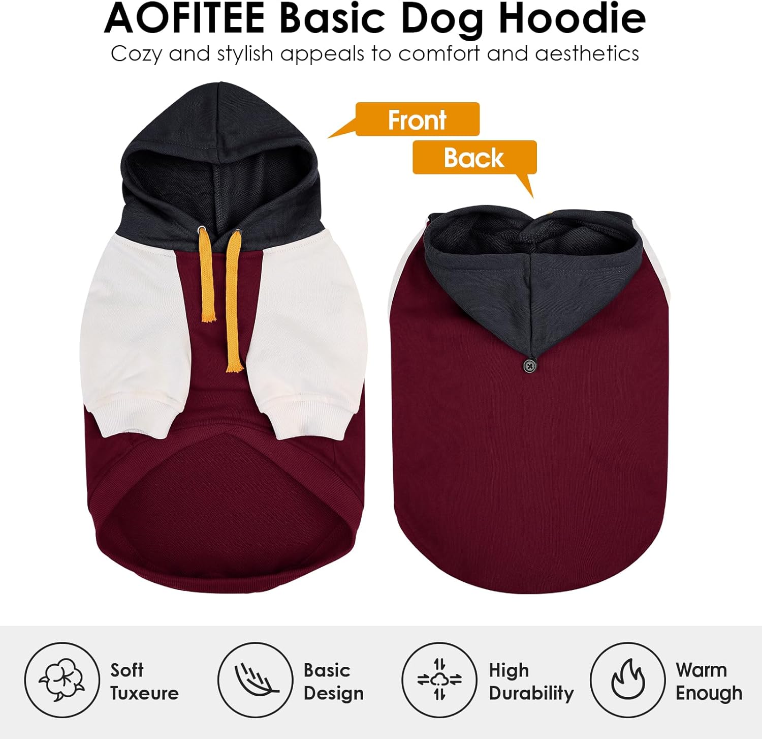 Keep Your Furry Bestie Cozy and Stylish with AOFITEE Basic Dog Hoodies! Is your pup shivering during those chilly morning walks or evening potty breaks? As the seasons change and holidays approach, it's time to upgrade your dog's wardrobe with AOFITEE's adorable and functional dog sweater. Perfect for small, medium, and large dog breeds, our warm dog sweaters are designed to deliver comfort, warmth, and undeniable style—whether you're celebrating Christmas, snapping photos on Halloween, or visiting family during Thanksgiving. Made from ultra-soft, breathable fabric, this dog sweatshirt with hood feels gentle against your pet's skin and prevents overheating. The fabric moves with your dog, allowing them to run, play, and relax freely both indoors and outdoors. The attention to detail makes it ideal for all-day wear, from lounging by the fireplace to joining you for a quick coffee run. We know how frustrating it can be to wrestle with complicated pet clothing. That's why we designed this hooded dog sweater with a convenient pullover style. Simply slip it over your dog's head—no zippers, no velcro, no hassle. The adjustable back button ensures a secure fit around the neck, so the hood stays in place without annoying your furry friends. Your dog will love the extra coziness of the full sleeve design, which provides warmth down to their paws. The attached hood adds an extra layer of protection against wind and light rain( this dog sweater is not waterproof), making it a practical choice for unpredictable weather. Plus, the cute look will earn your pooch compliments everywhere they go! This versatile dog pullover isn't just for holidays—it's a year-round essential. Use it as a casual layer during autumn strolls, a festive outfit for gift-opening moments, or even as a photo prop for your next holiday card. It's machine washable and holds up well after multiple washes, saving you time and keeping your pet fresh.