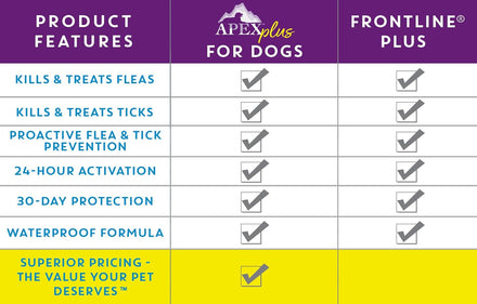 - EFFECTIVENESS — Apex Plus flea and tick prevention for dogs kills adult fleas and also targets flea eggs, larvae, and prevents the development of flea pupae, ensuring a thorough elimination of fleas at all life stages.