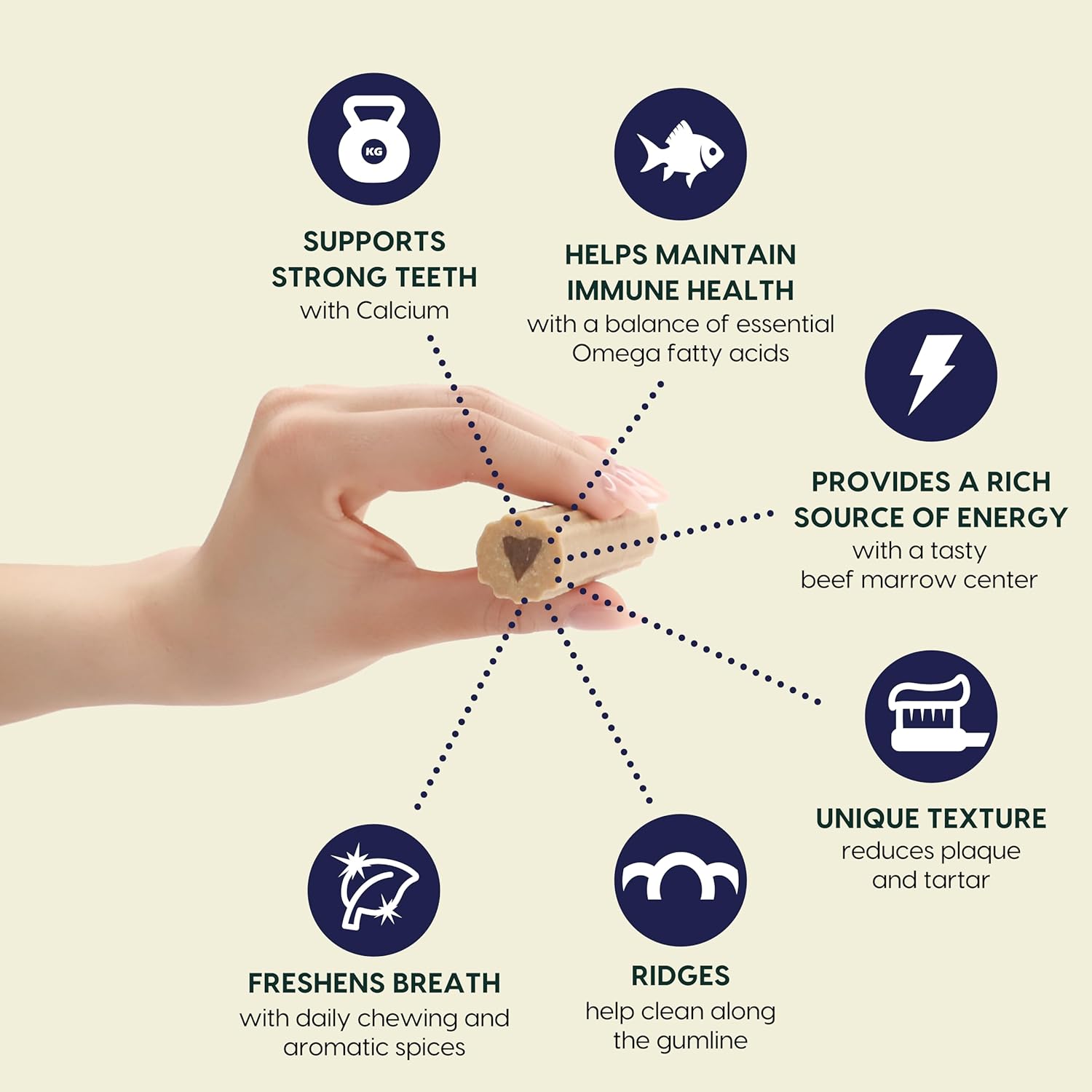 - Strengthening dog toothpaste: Fortify dental chews level up your dog dental care with calcium for strong teeth, omegas for immune support, and a beef marrow center for energy; outer ridges and texture reduce plaque and tartar, and clean the gum line